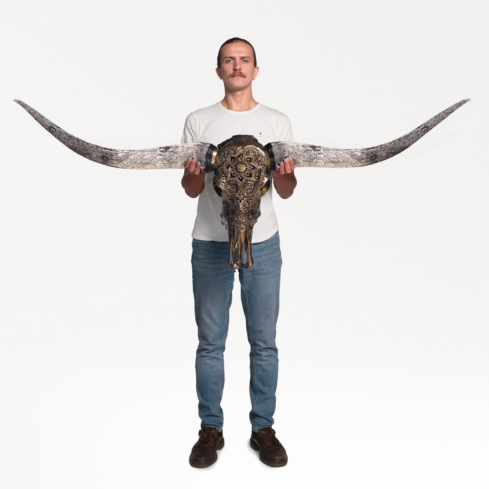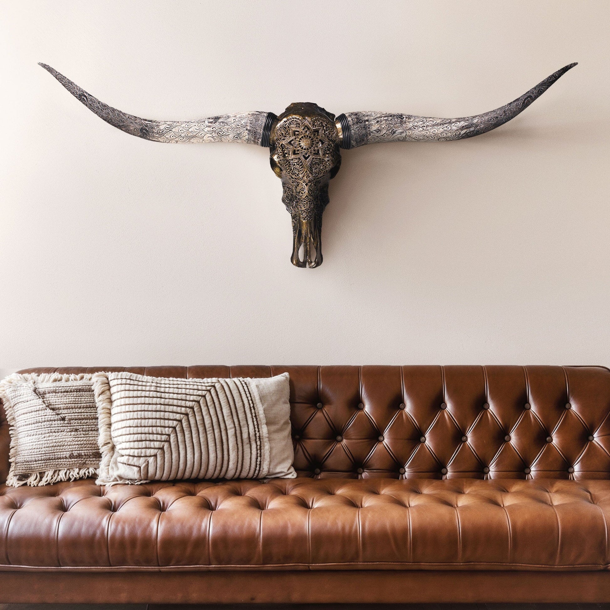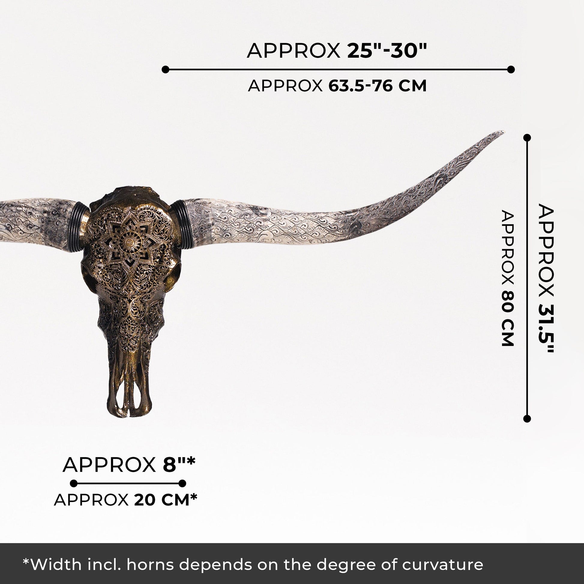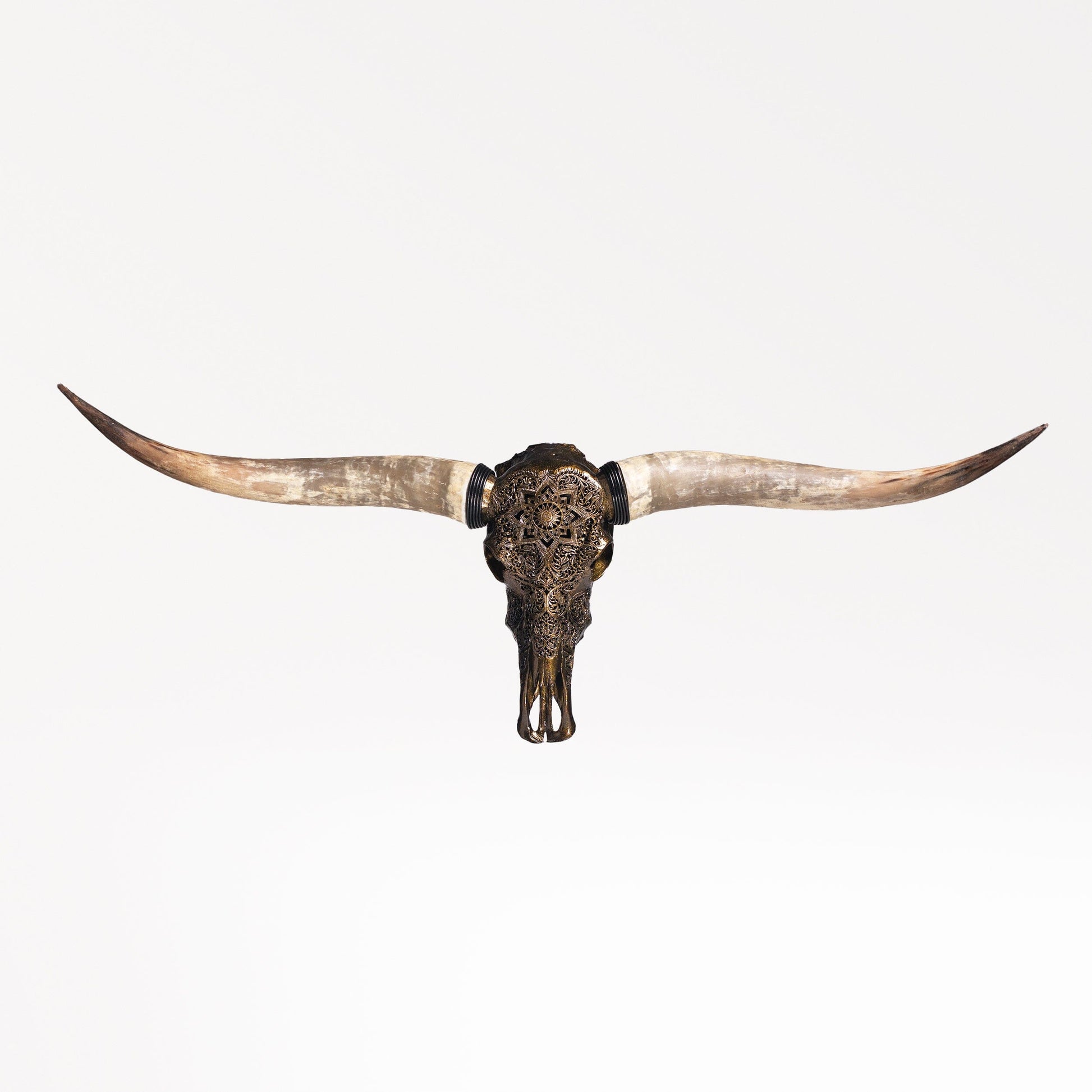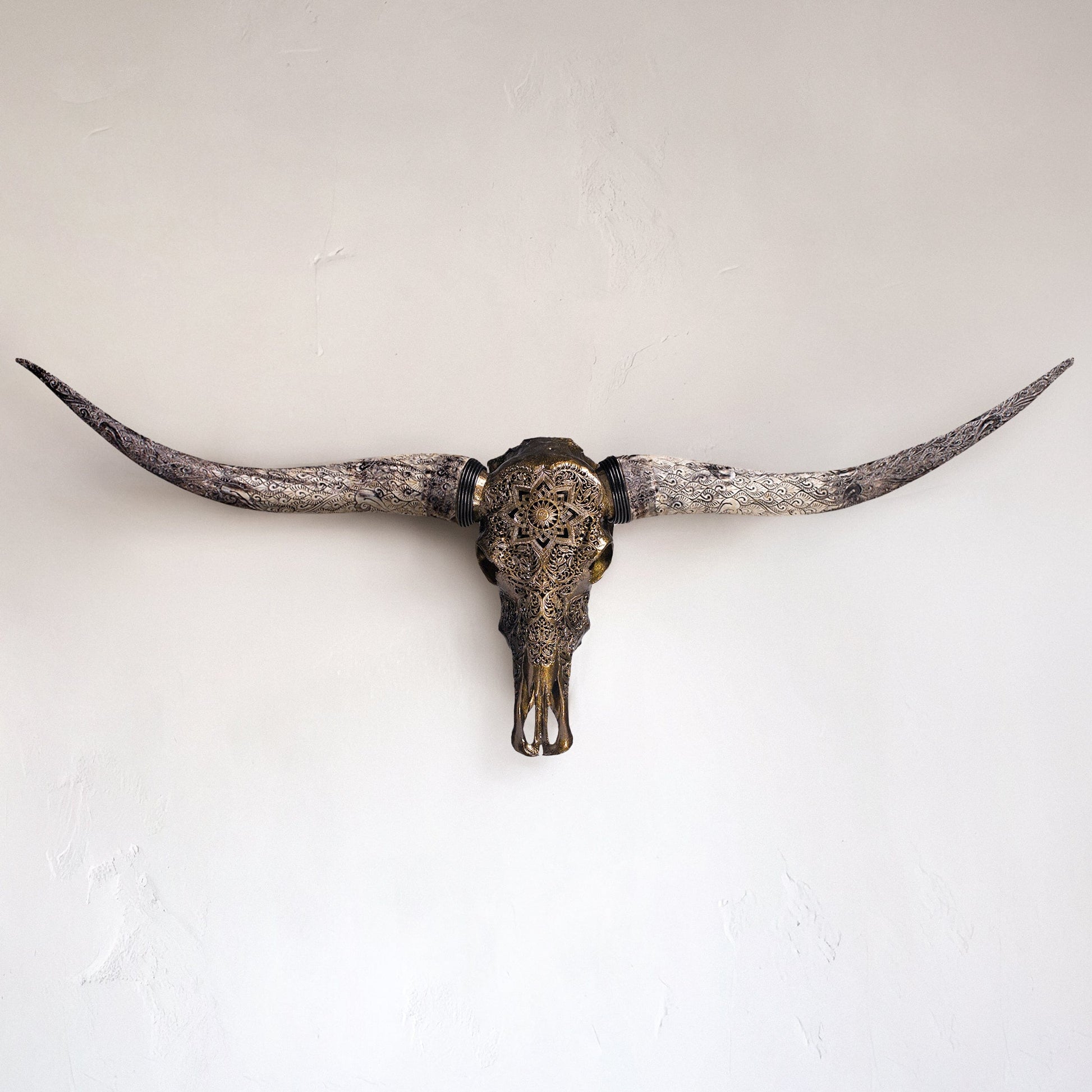 Hand Carved Longhorn Skull - Antique Bronze Mandala // Metallic Finish