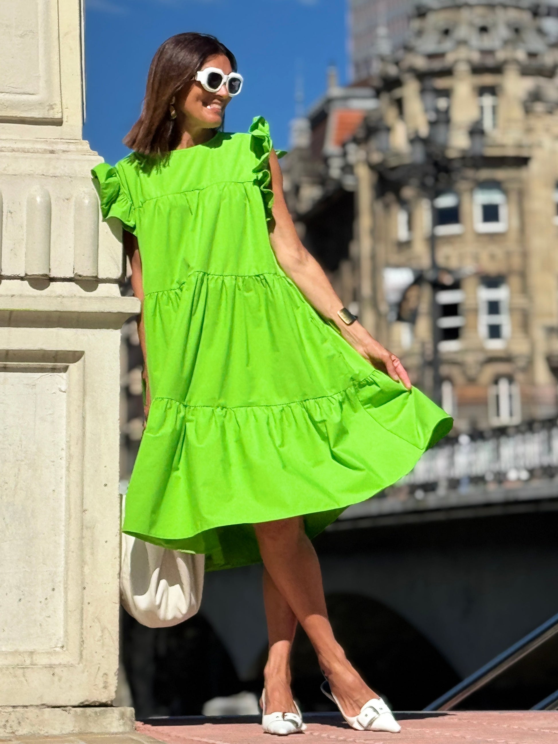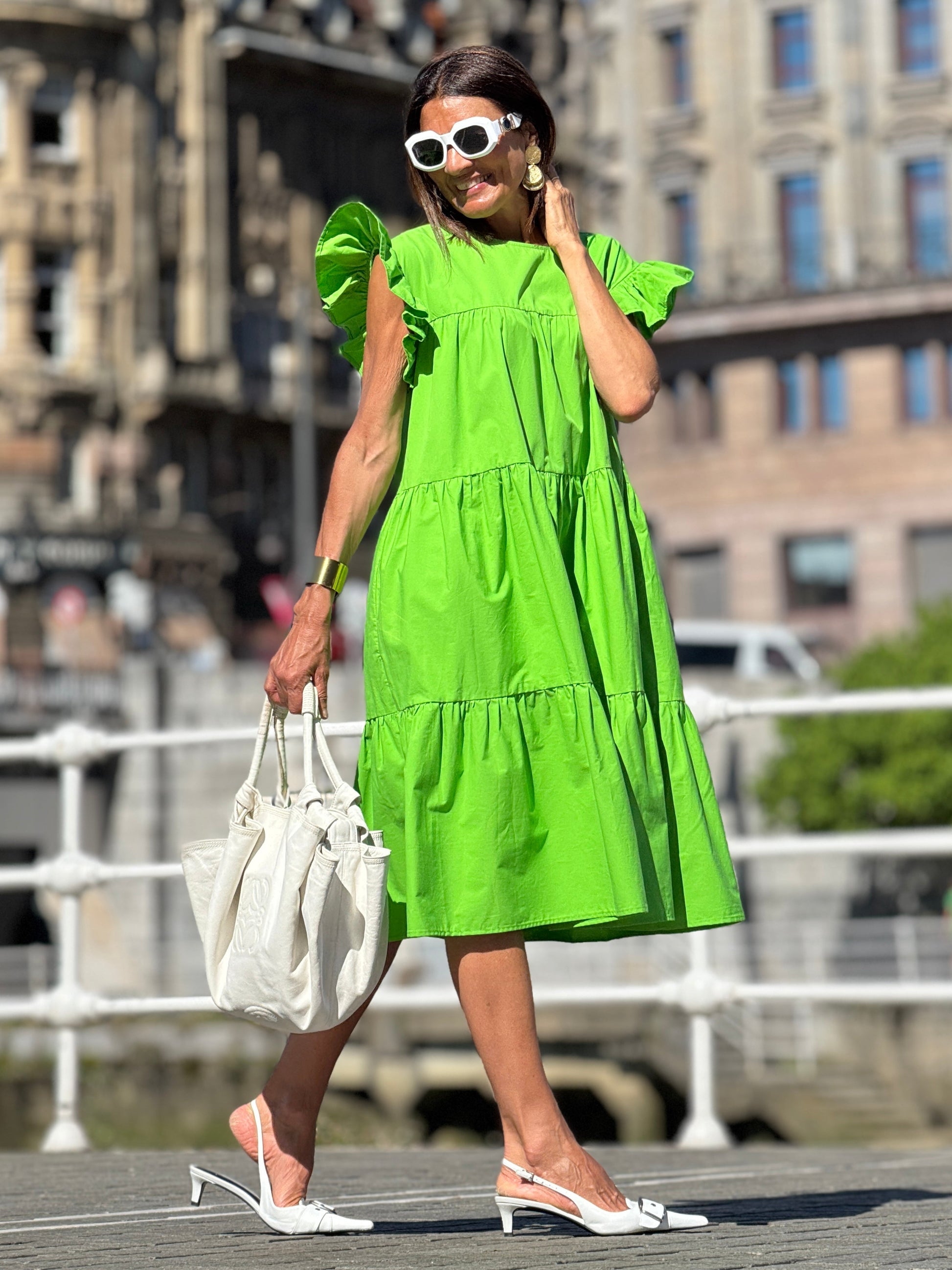 Stay stylish and comfortable all day with the Dress Caro Green, a must-have piece made with luxurious 100% Egyptian cotton. This dress, designed by Marielle Stokkelaar, features a one size fits all design that fits till sizes 44 German, 16 UK, and 12 USA perfectly. The lenght of the dress is 102 cm. The Dress Caro also looks great when you are not that tall, with a length that is also ideal for around 160 cm.Dress Caro Green has side pockets.