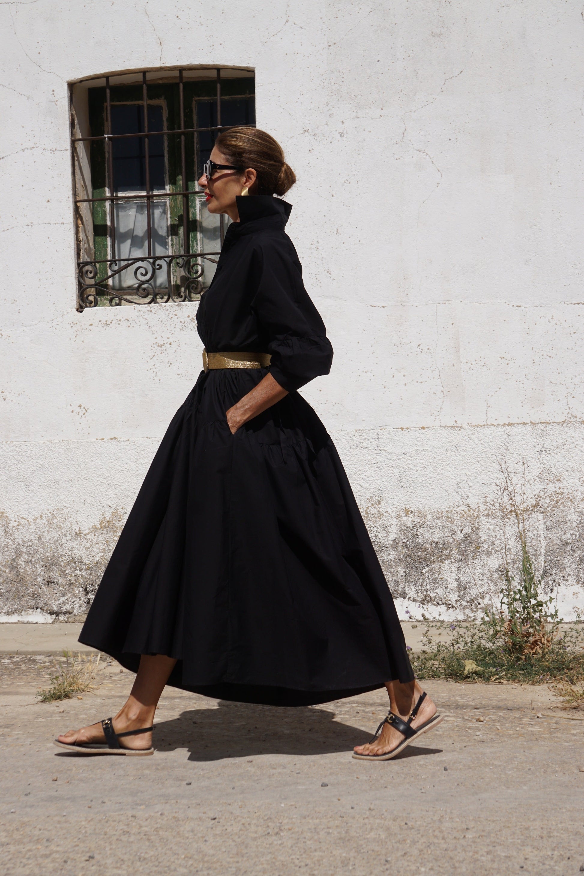 The Charlotte Black Dress is a stylish and comfortable one size fits all dress from MARIELLE STOKKELAAR. Made from 100% Egyptian cotton, it is suitable till sizes 44 German, 16 UK, and 12 USA. The length of the dress is 136 cm, but it can be shortened if needed..Dress Charlotte Black has side pockets.