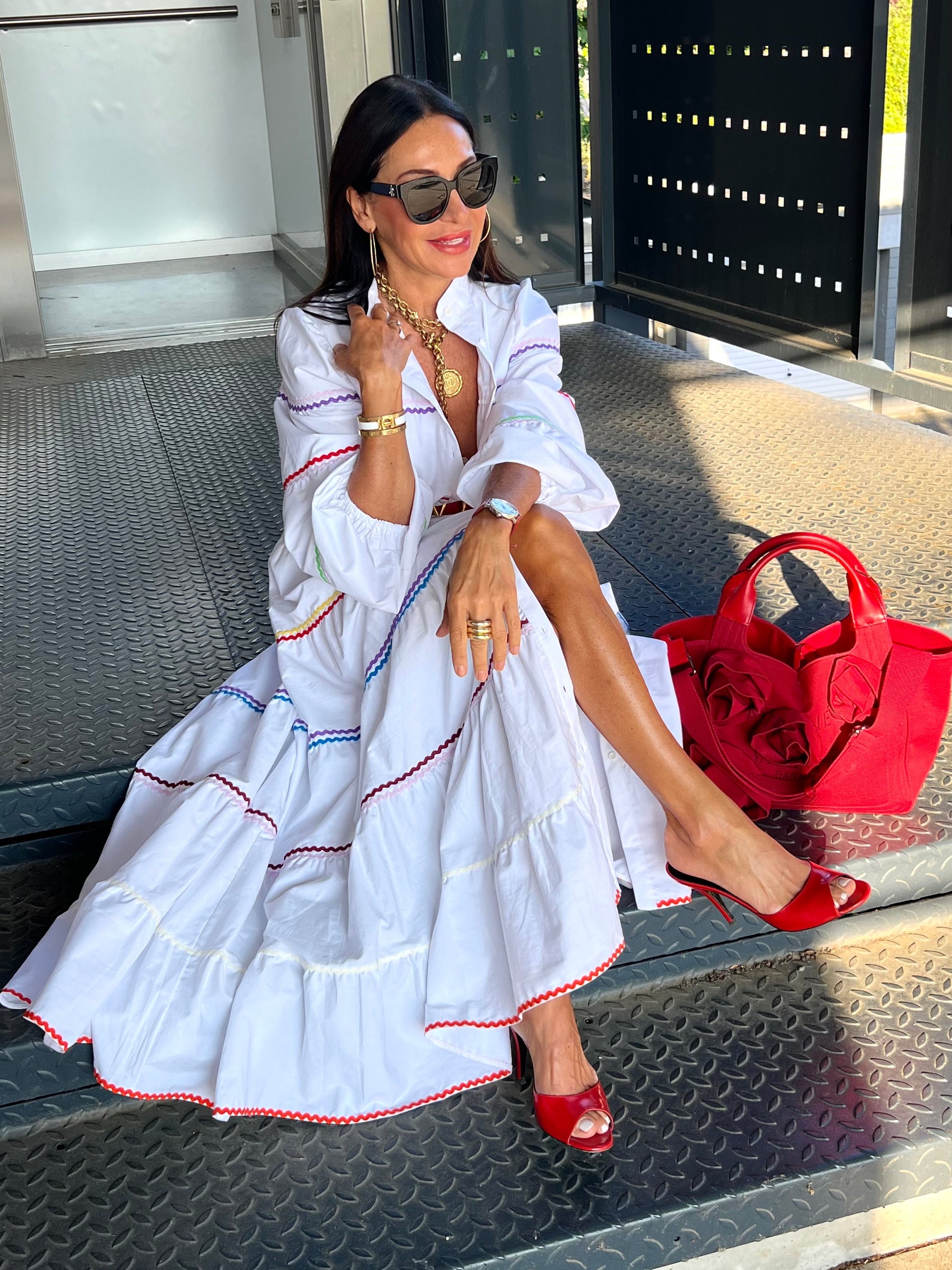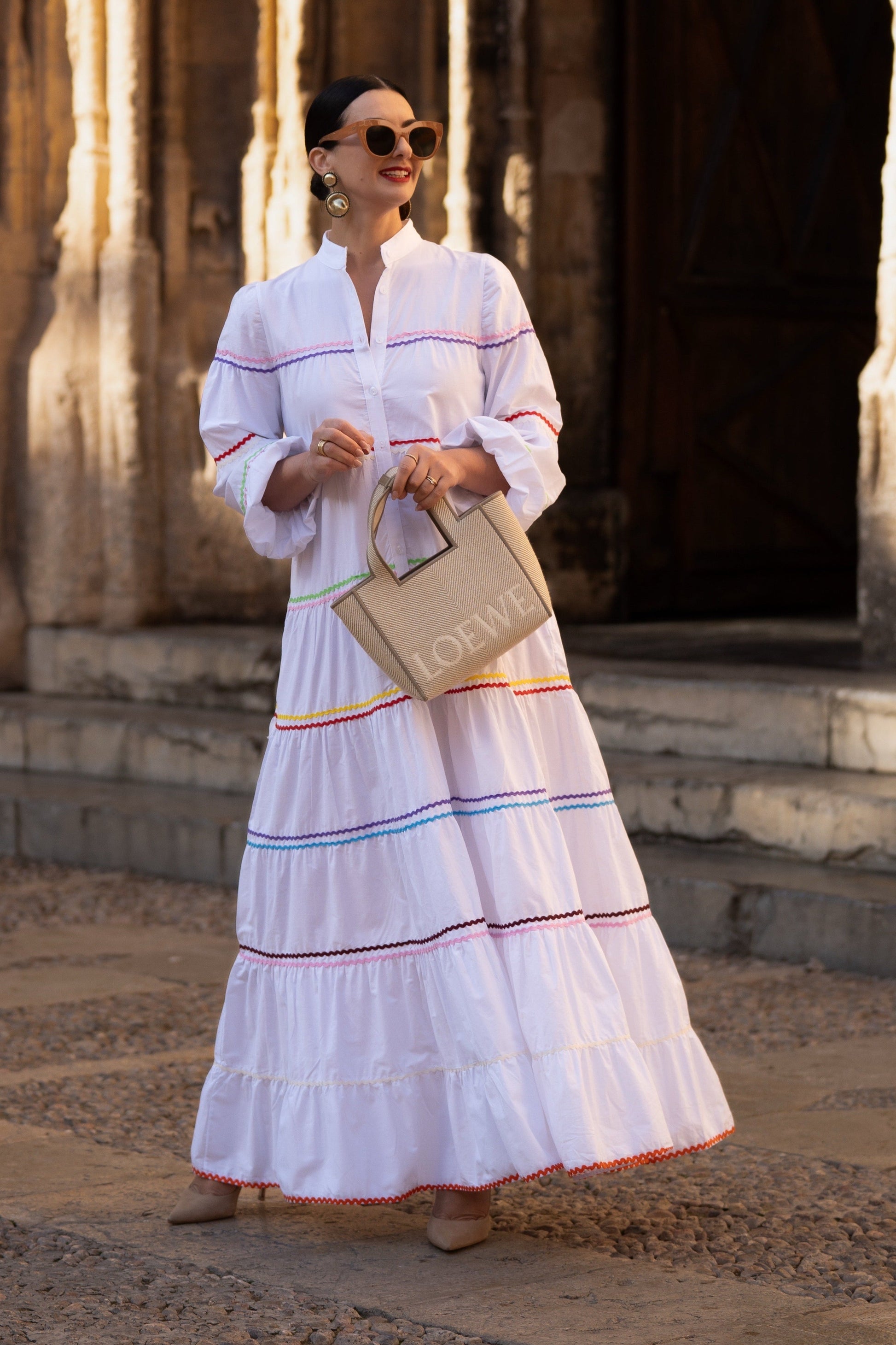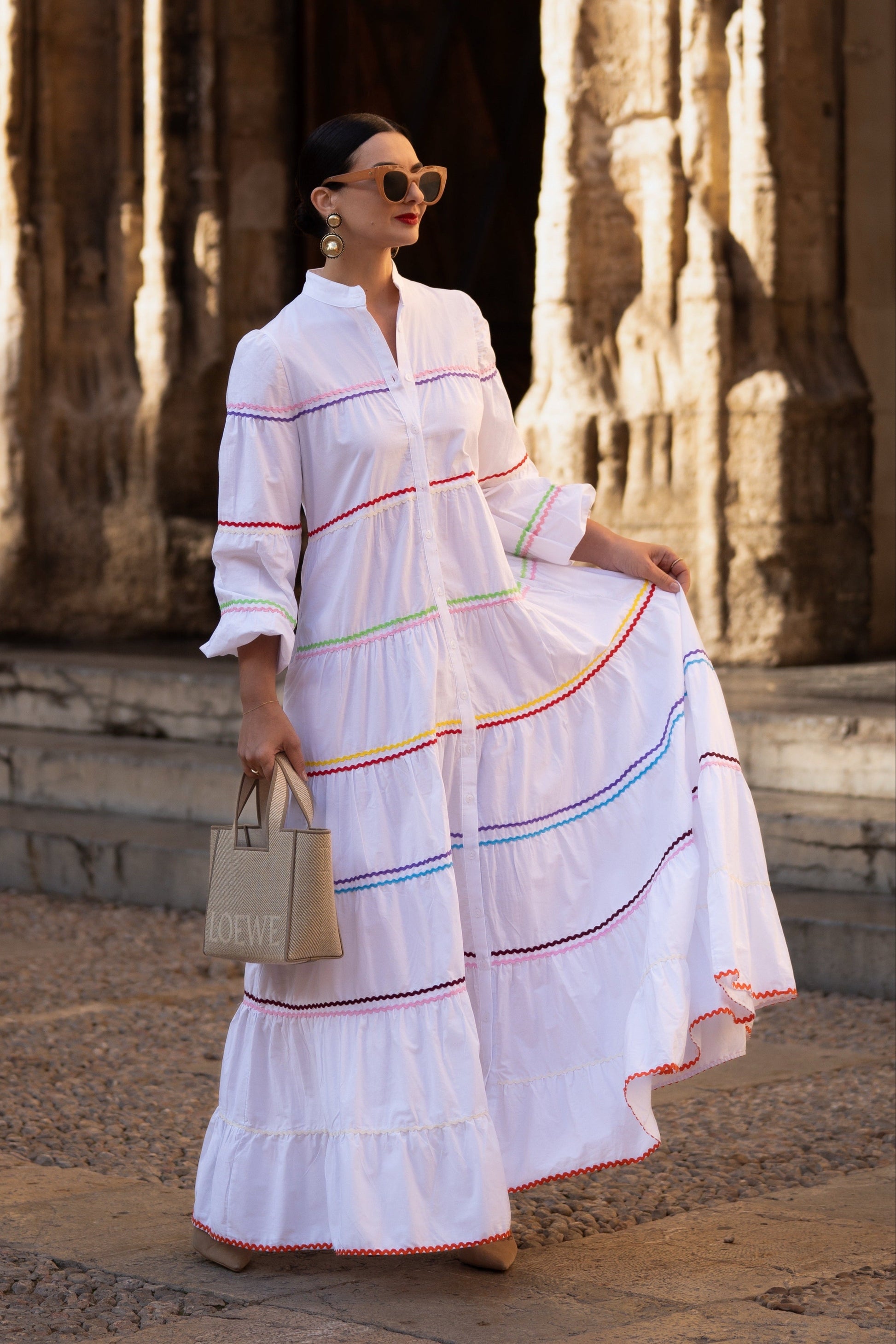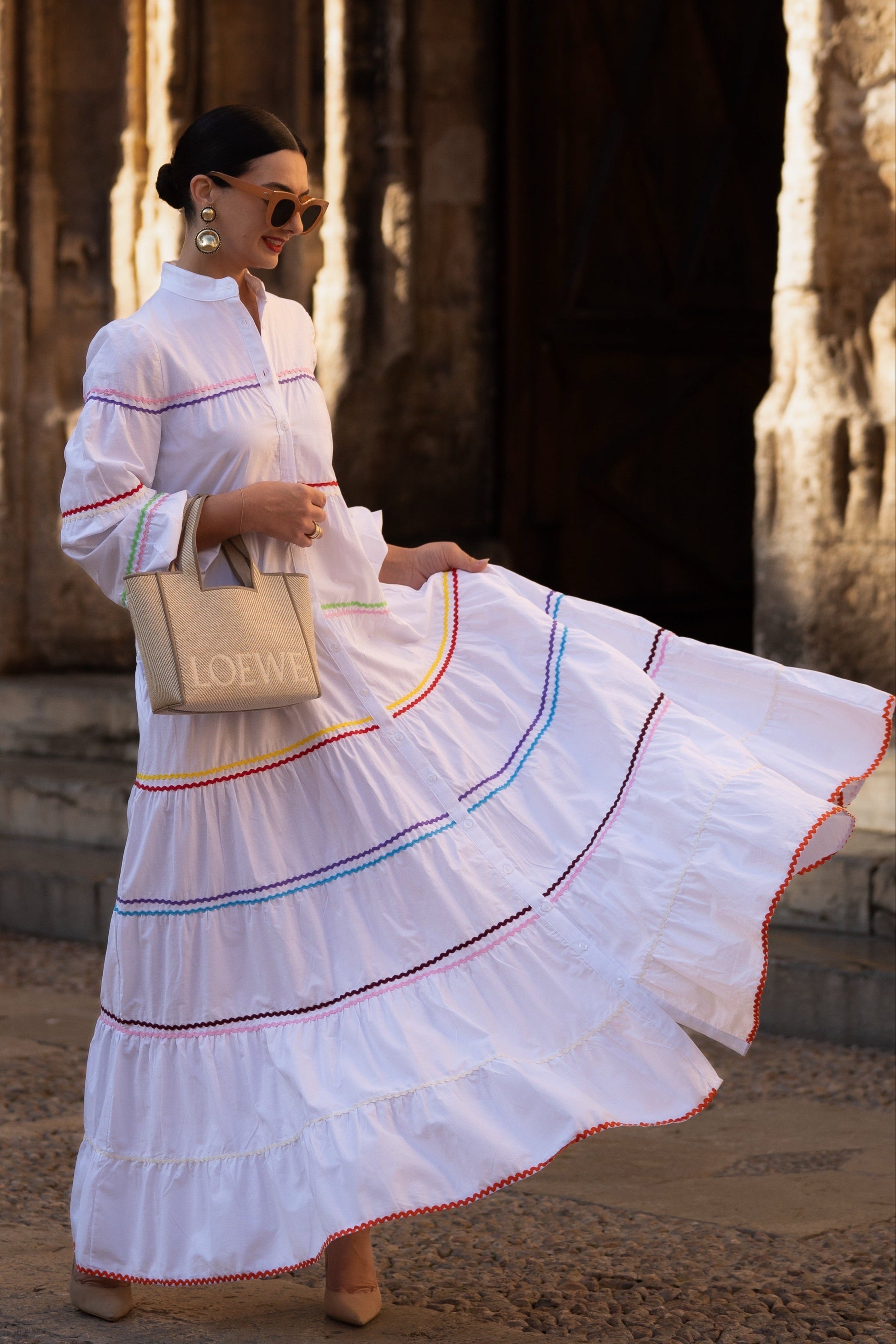 The Clementine White Dress is a stylish and comfortable one size fits all dress from MARIELLE STOKKELAAR. Made from 100% Egyptian cotton with colour accents it is suitable till sizes 42 German, 14 UK, and 10 USA. The length of the dress is 136 cm, but it can be shortened if needed.Dress Clementine White has side pockets.