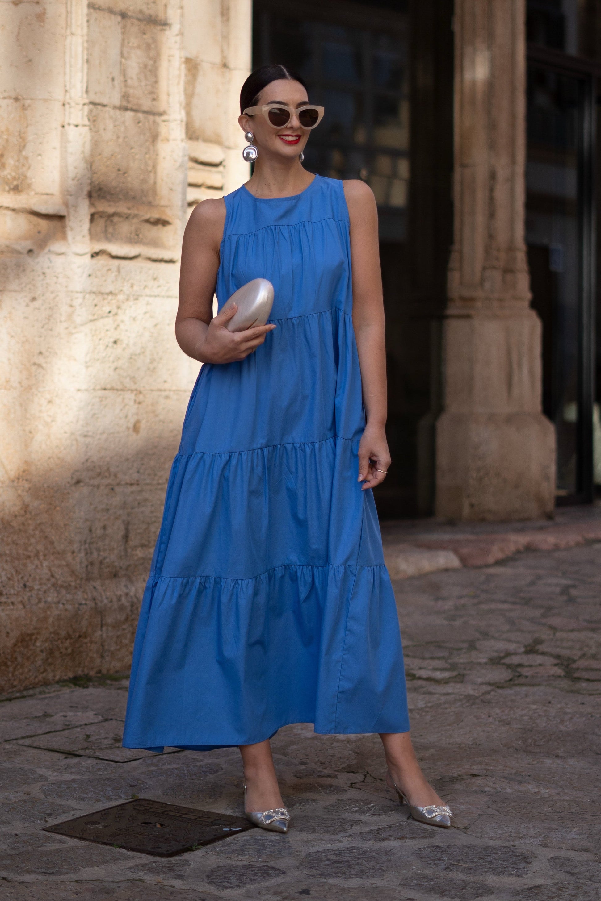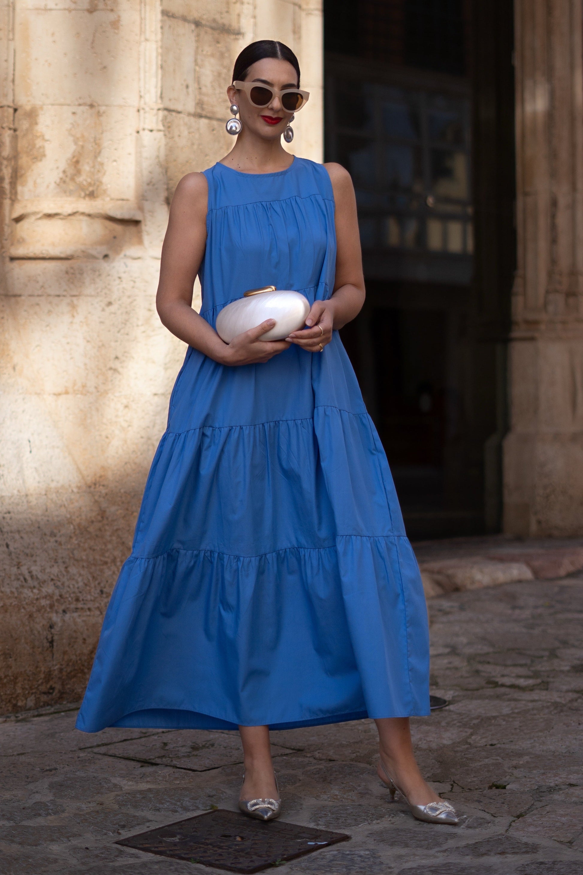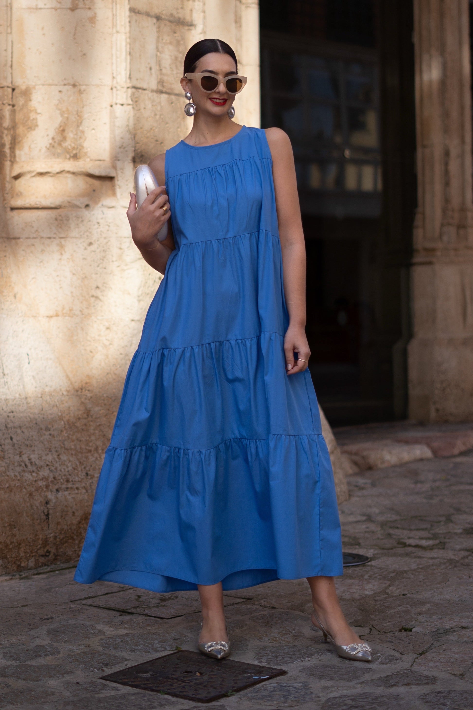 Elevate your style with Dress Eleonore Blue by Marielle Stokkelaar. Made from luxurious Egyptian Cotton, this dress is a true work of art. Its intricate design and premium material exude elegance and exclusivity.The length is 134 cm. Make a sophisticated statement with this one-of-a-kind dress.Dress Eleonore Blue has side pockets.