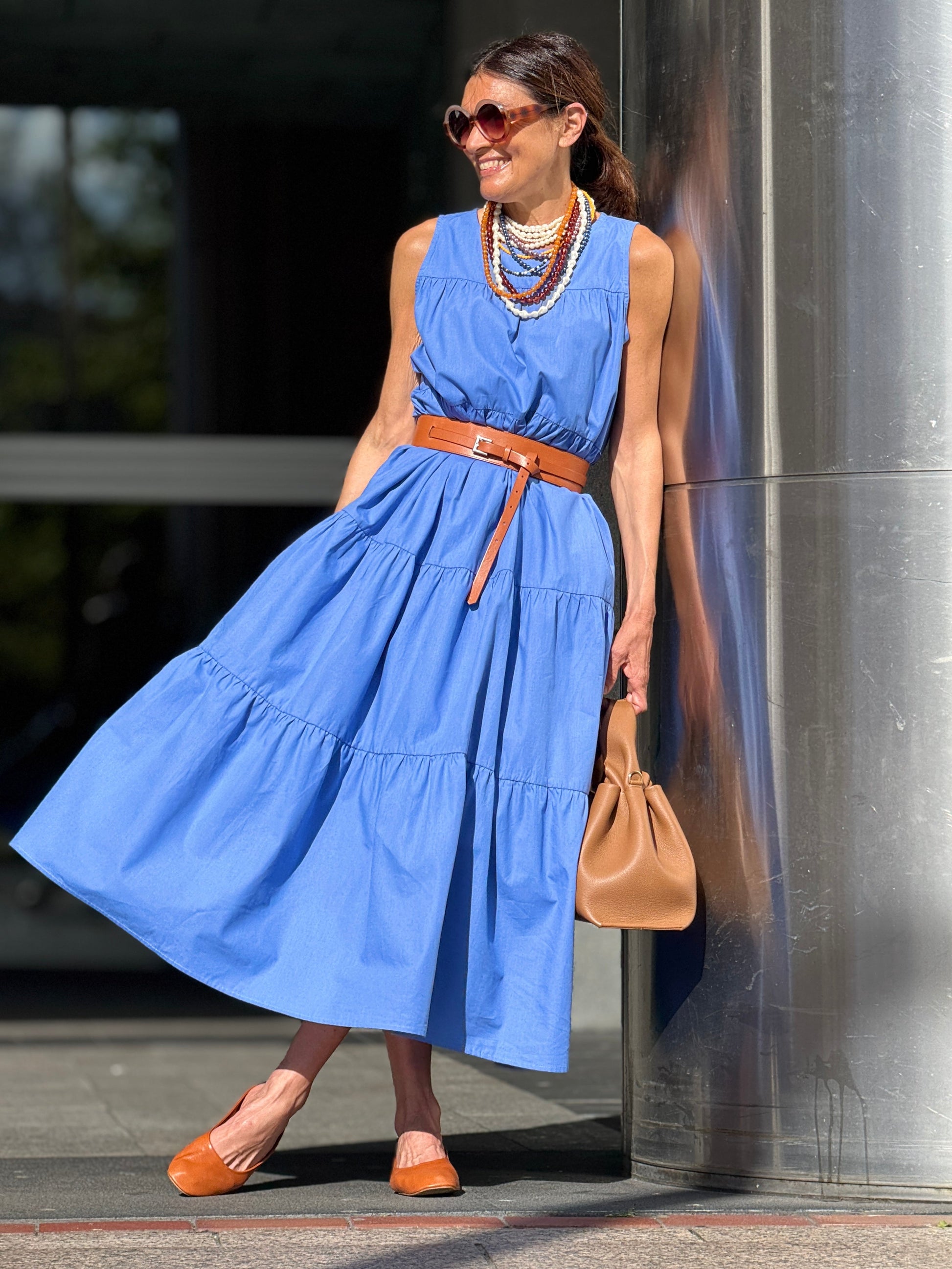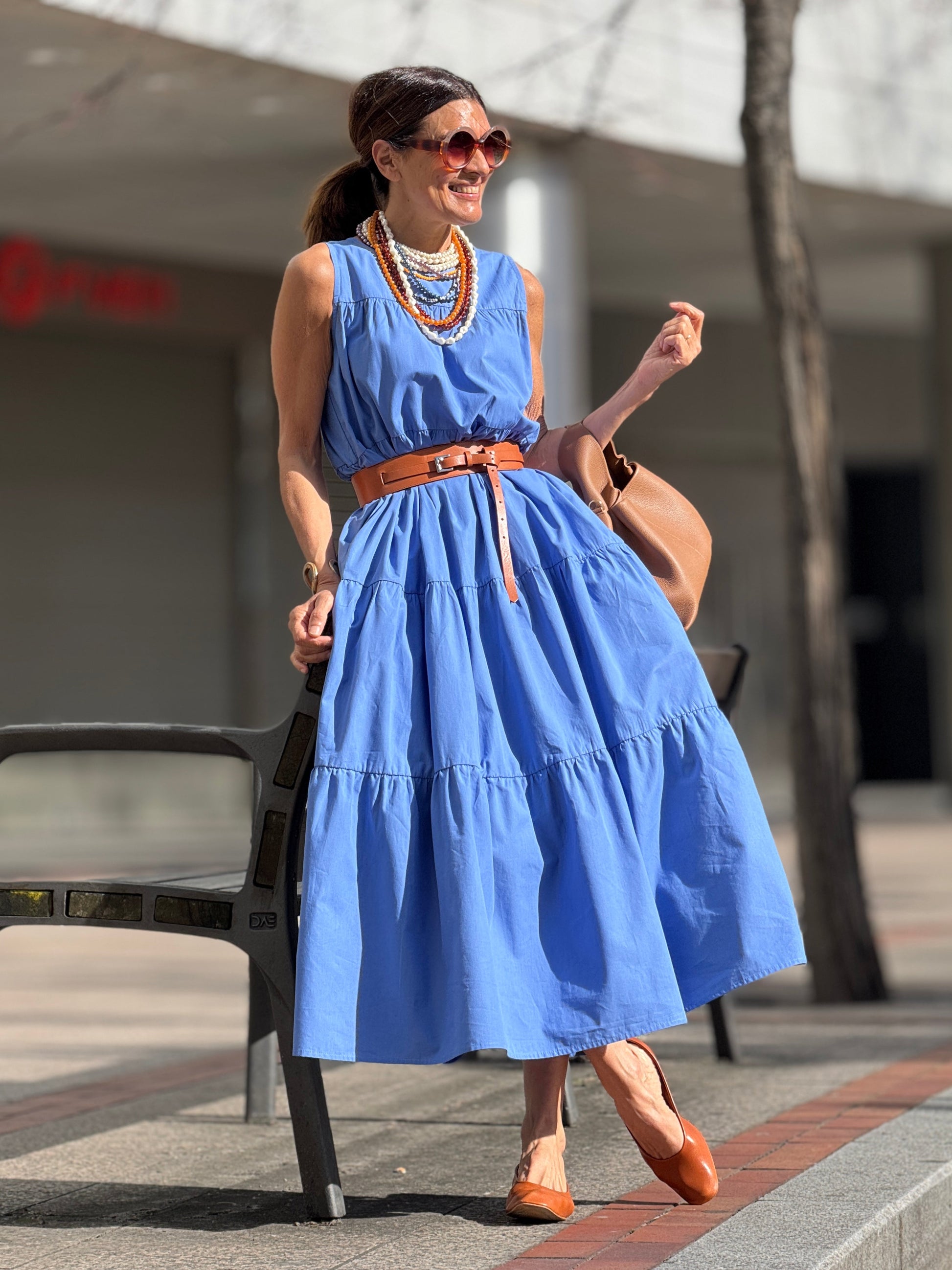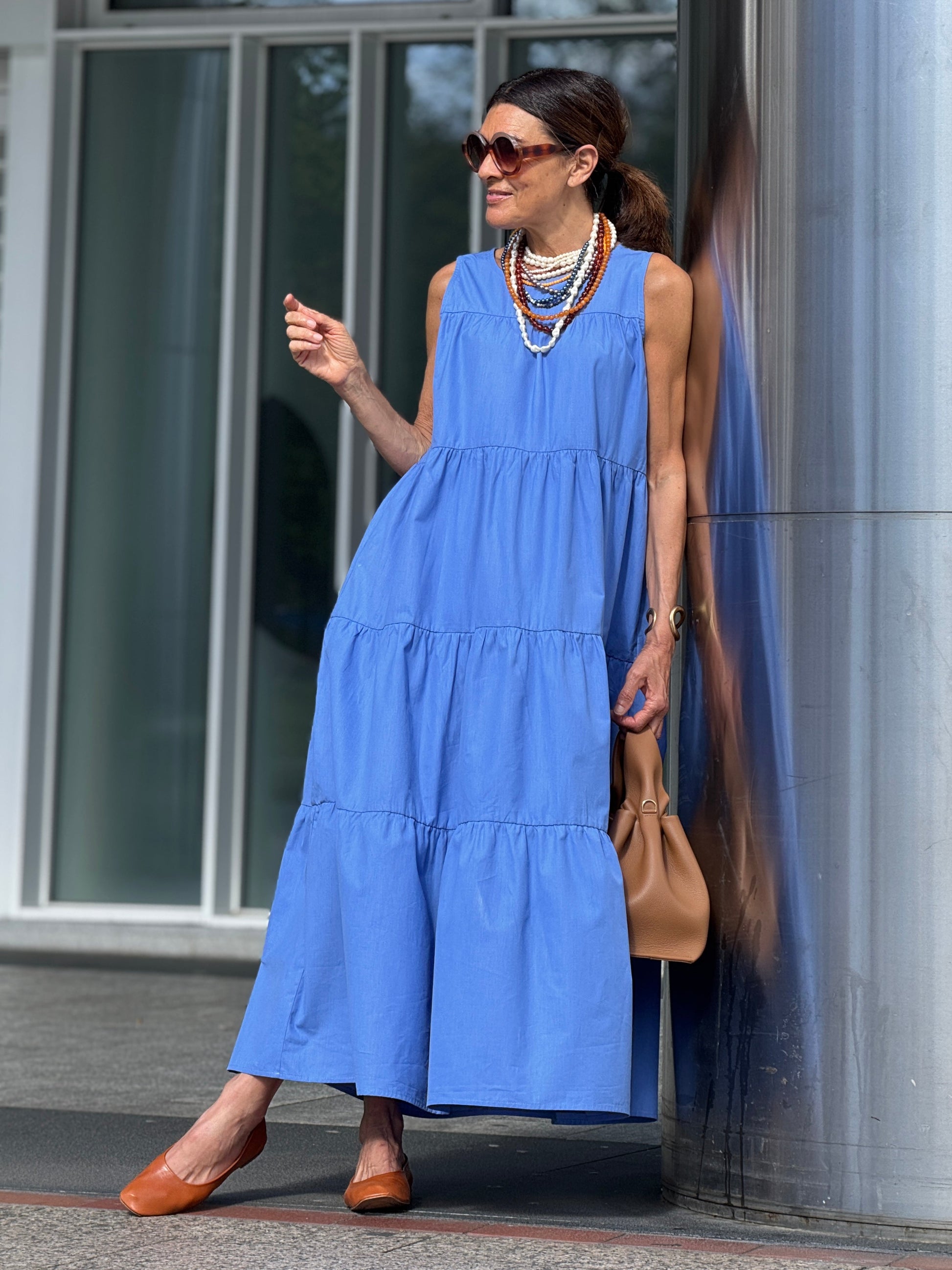 Elevate your style with Dress Eleonore Blue by Marielle Stokkelaar. Made from luxurious Egyptian Cotton, this dress is a true work of art. Its intricate design and premium material exude elegance and exclusivity.The length is 134 cm. Make a sophisticated statement with this one-of-a-kind dress.Dress Eleonore Blue has side pockets.