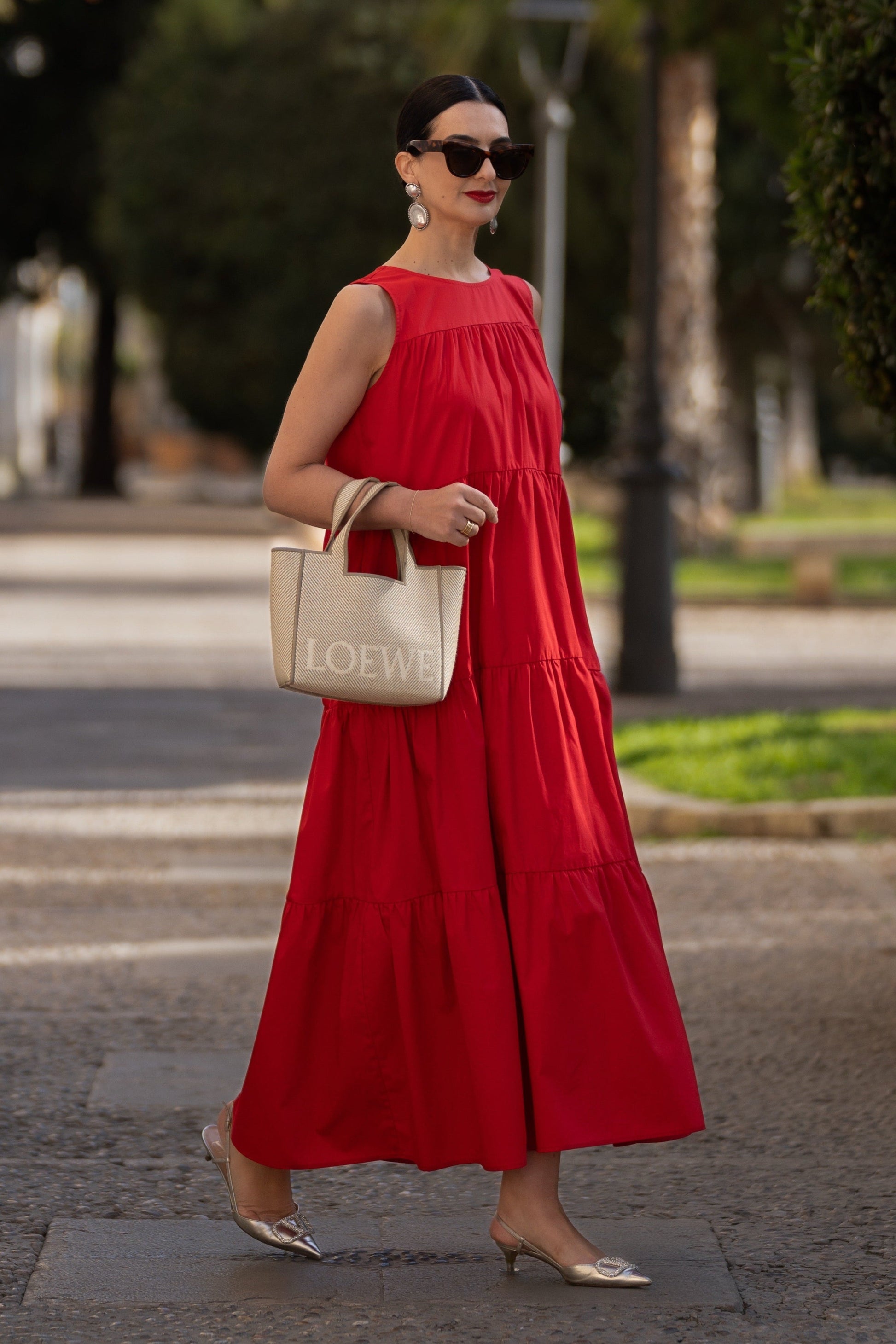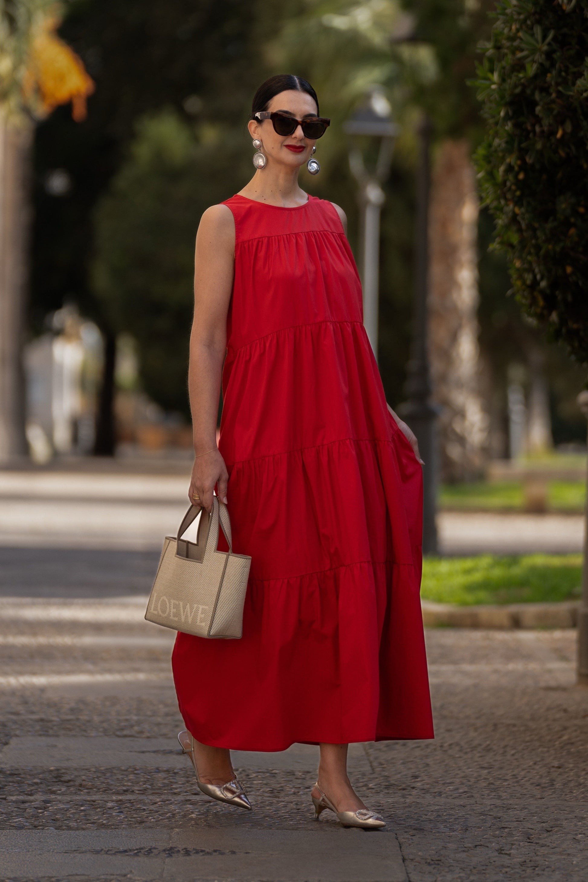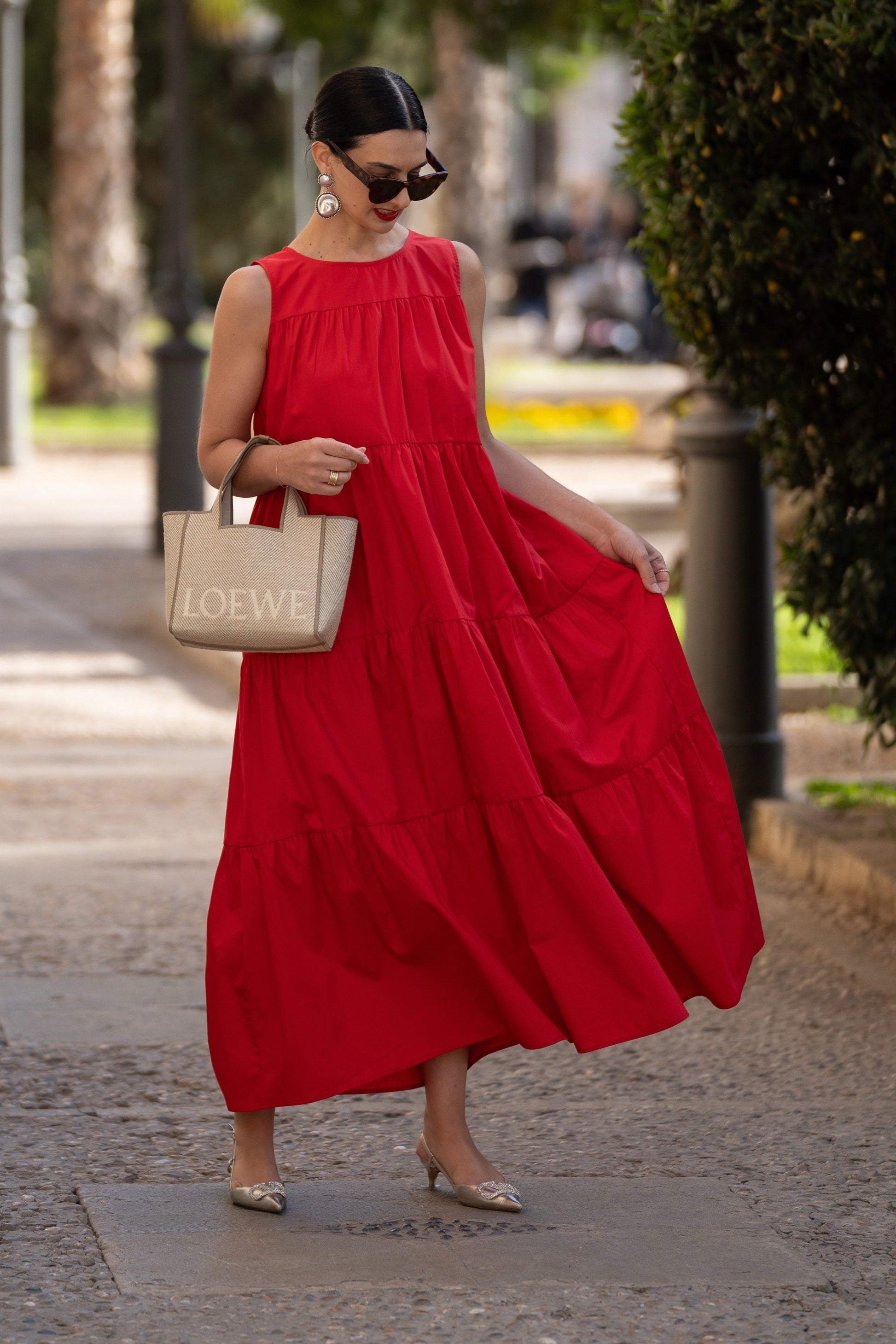 Looking for the perfect dress? Look no further than the Eleonore Red Dress, made from 100% luxurious Egyptian cotton. This one size fits all dress is designed to flatter sizes 36 to 42 (EU), 6 to 14 (UK), and 2 to 10 (USA). The length is 134 cm. The comfortable, breathable fabric and elegant design make it the perfect choice for any occasion.Dress Eleonore Red has side pockets.