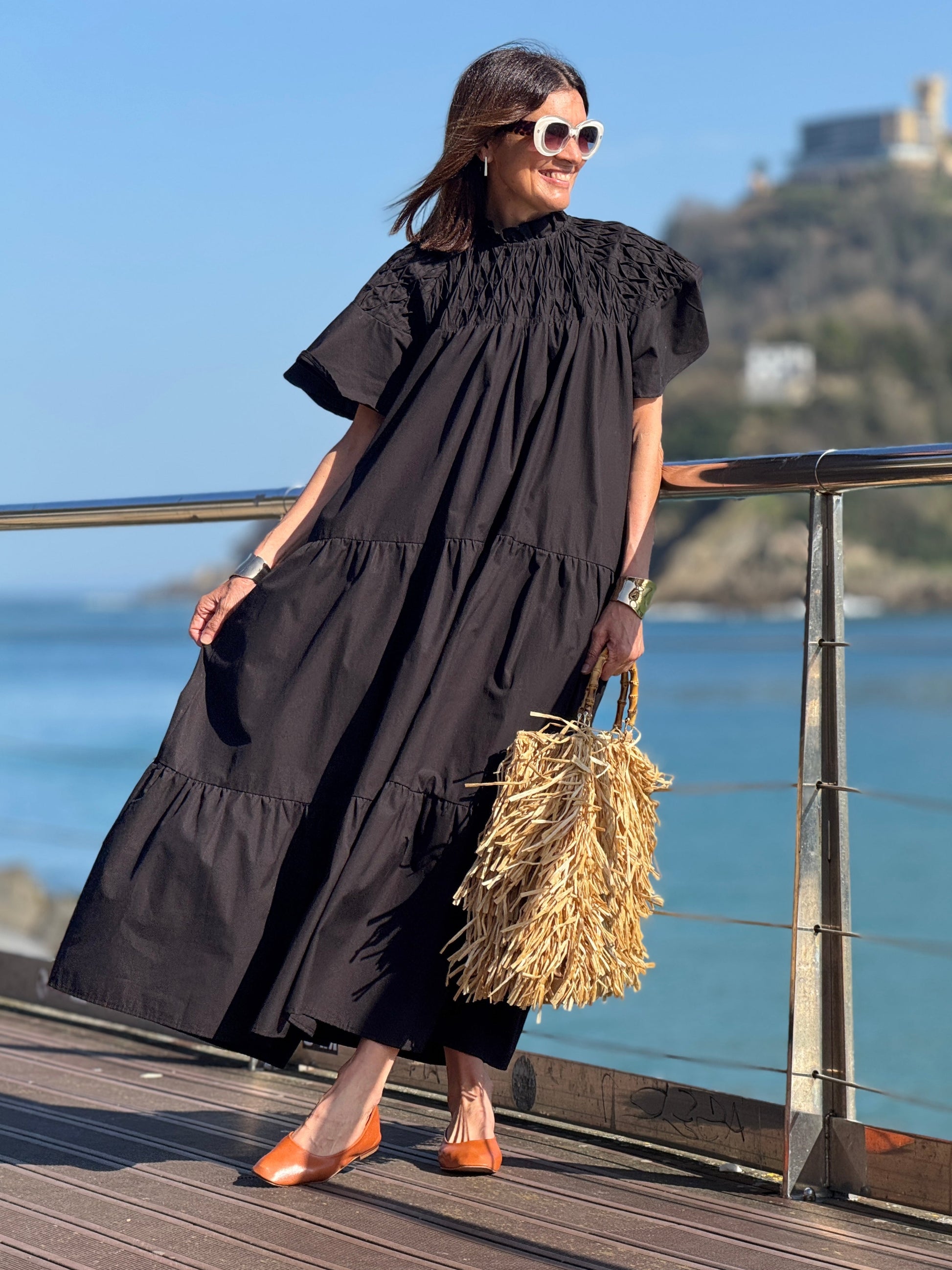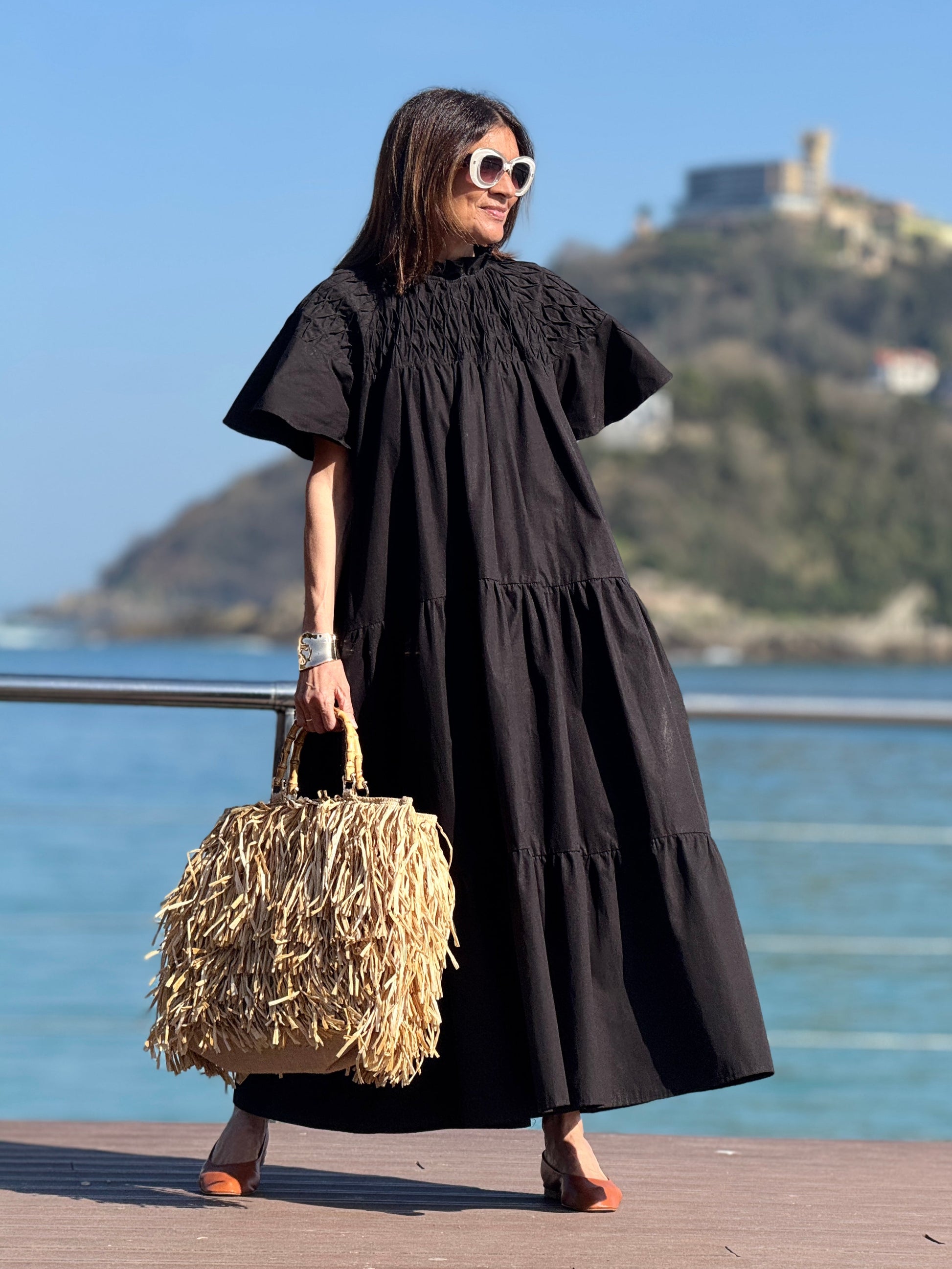 Indulge in luxury with our Dress Filippa Black, made with premium Egyptian cotton by designer Marielle Stokkelaar. Experience the delicate touch and exceptional quality of this elegant dress, perfect for any occasion. Elevate your wardrobe with our exclusive and sophisticated piece.