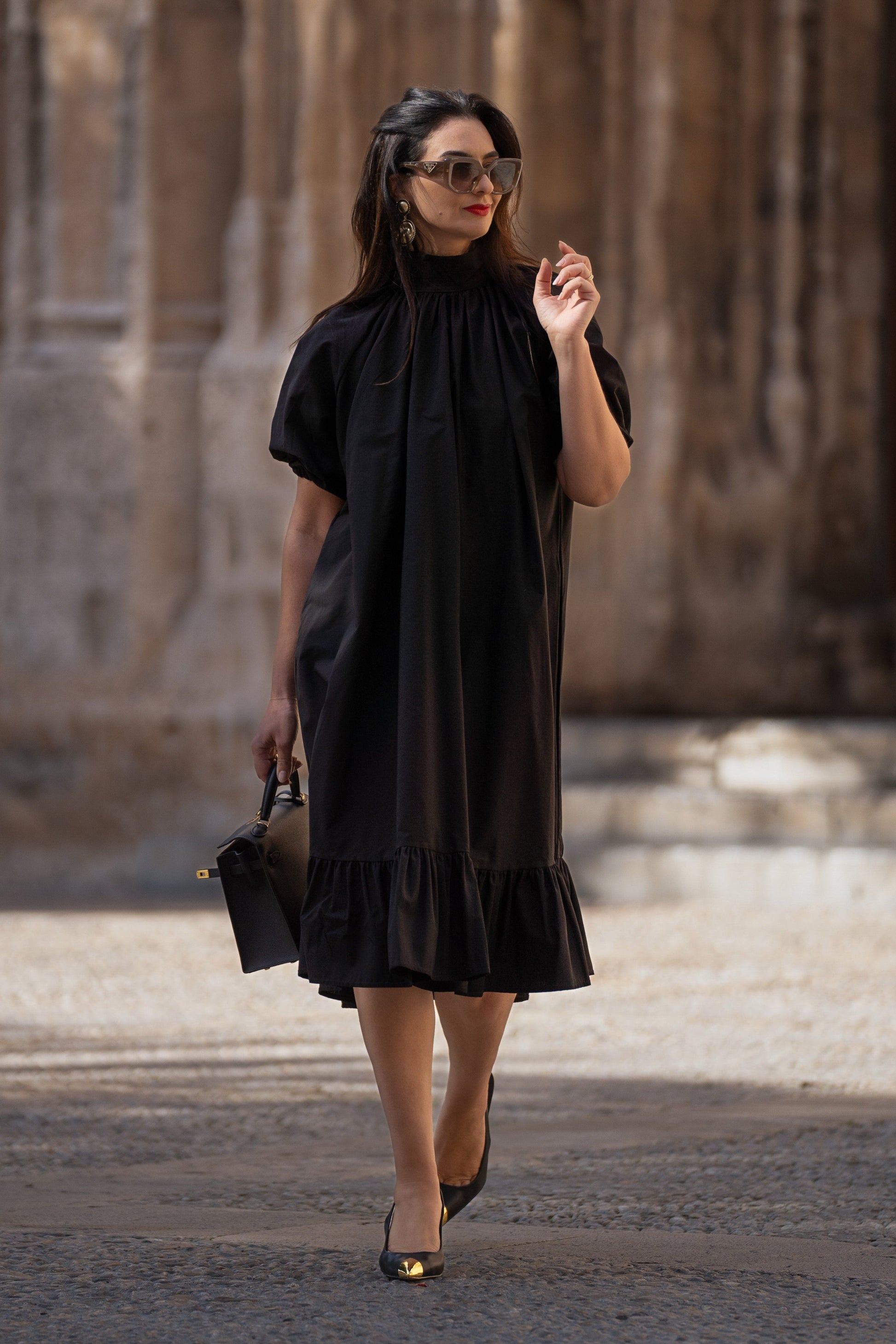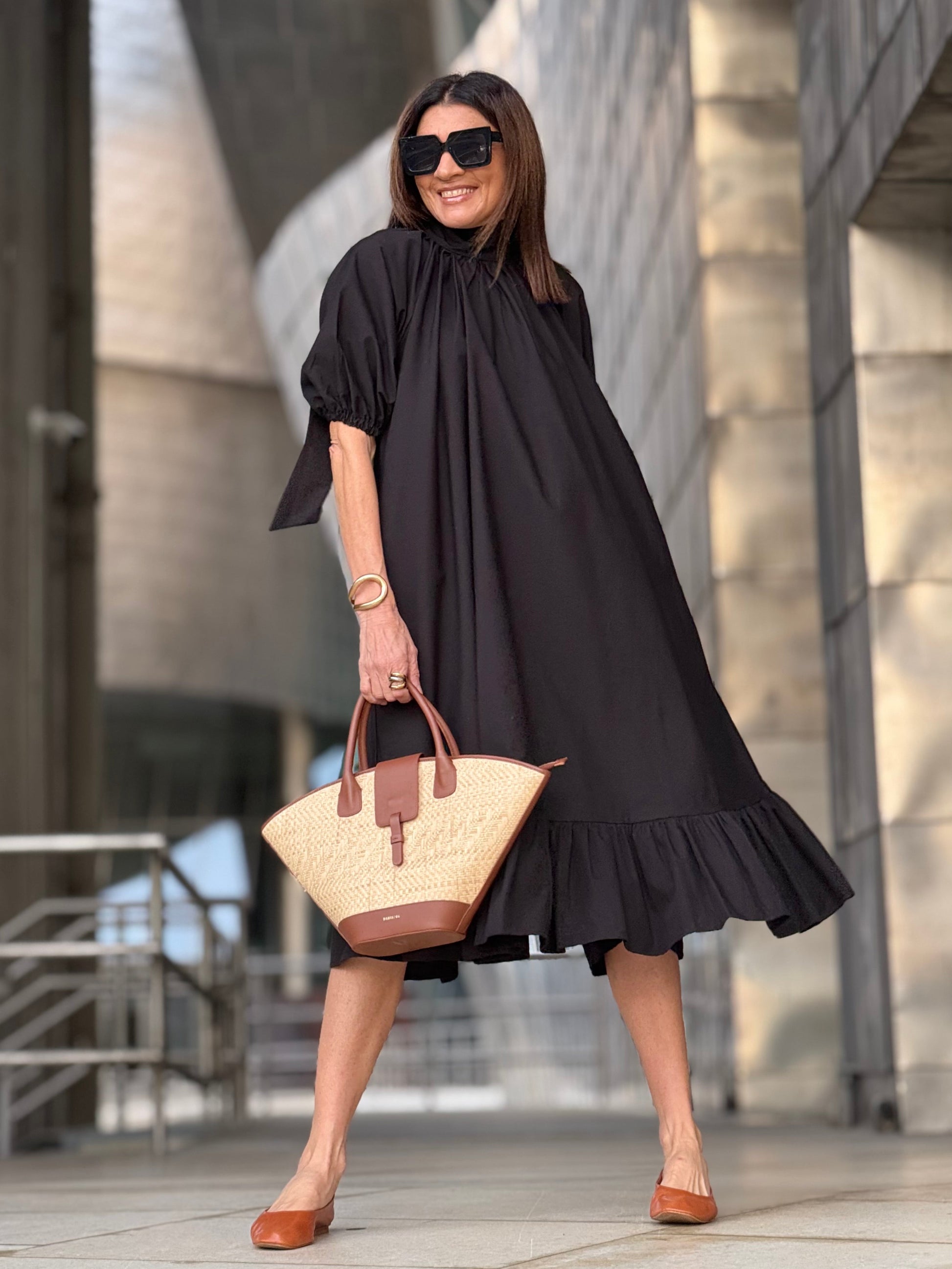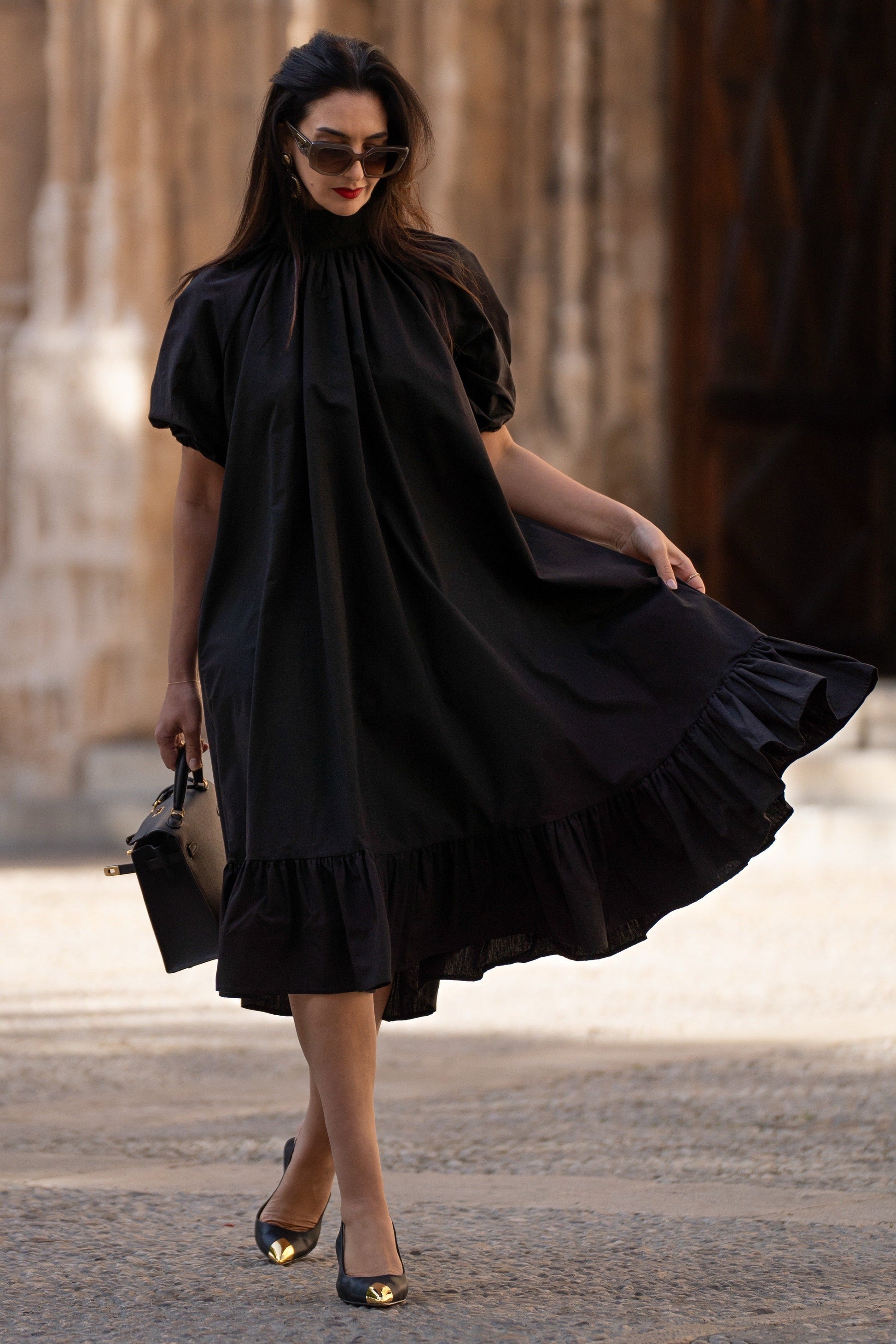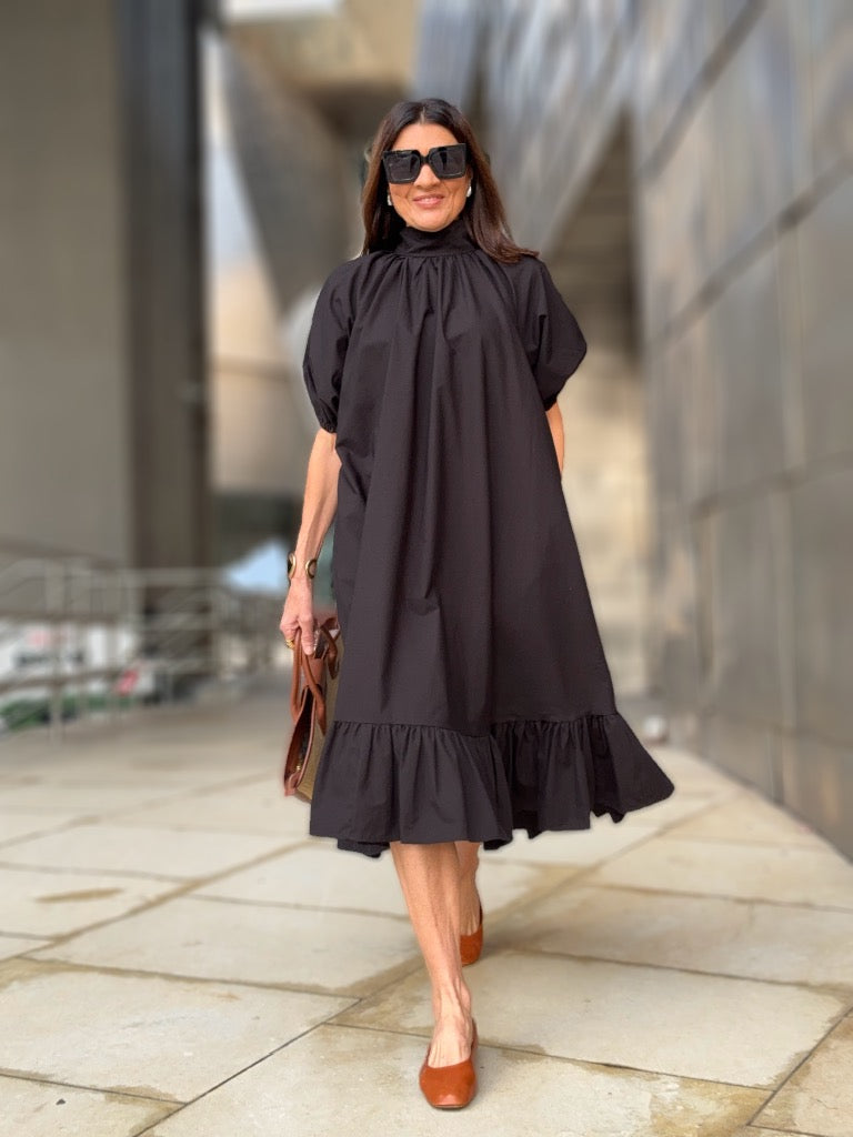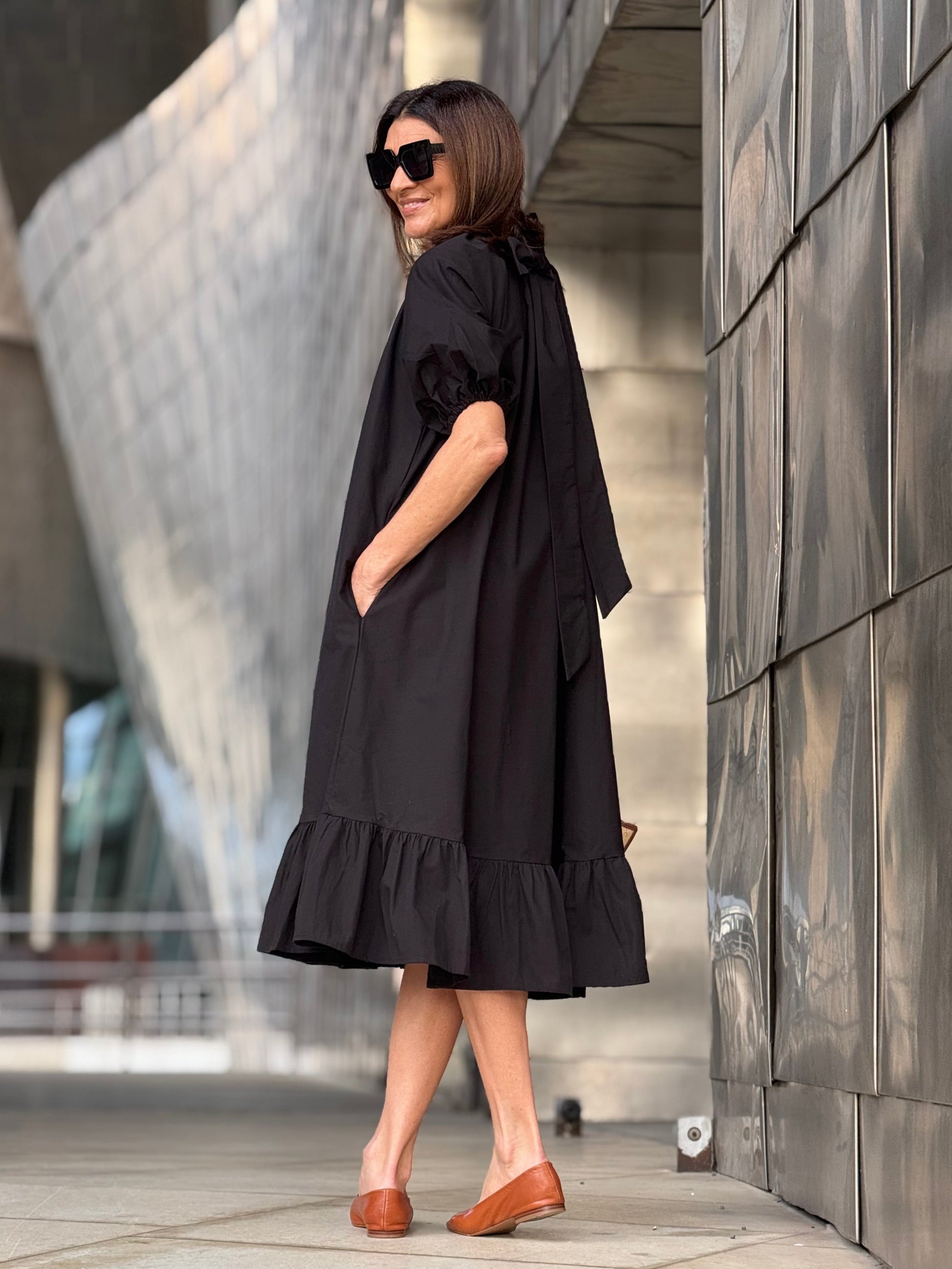 Discover effortless elegance with the Dress Maeve Black by Marielle Stokkelaar. Made with 100% Egyptian cotton, this fashionable dress features a charming bow and can be worn closed at the front or back for versatile styling options. Experience luxurious comfort and timeless style with this must-have dress.Dress Maeve Black has side pockets.