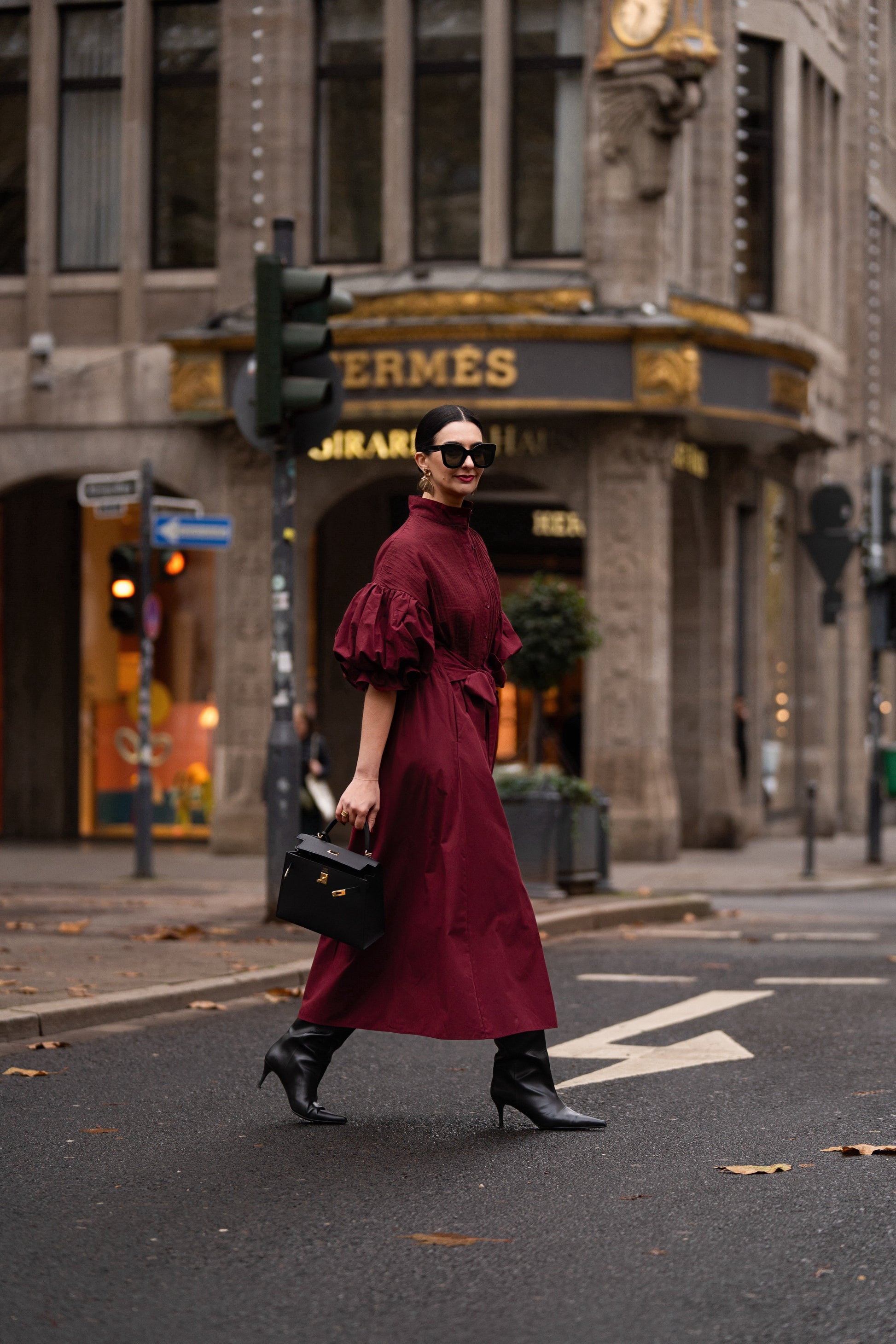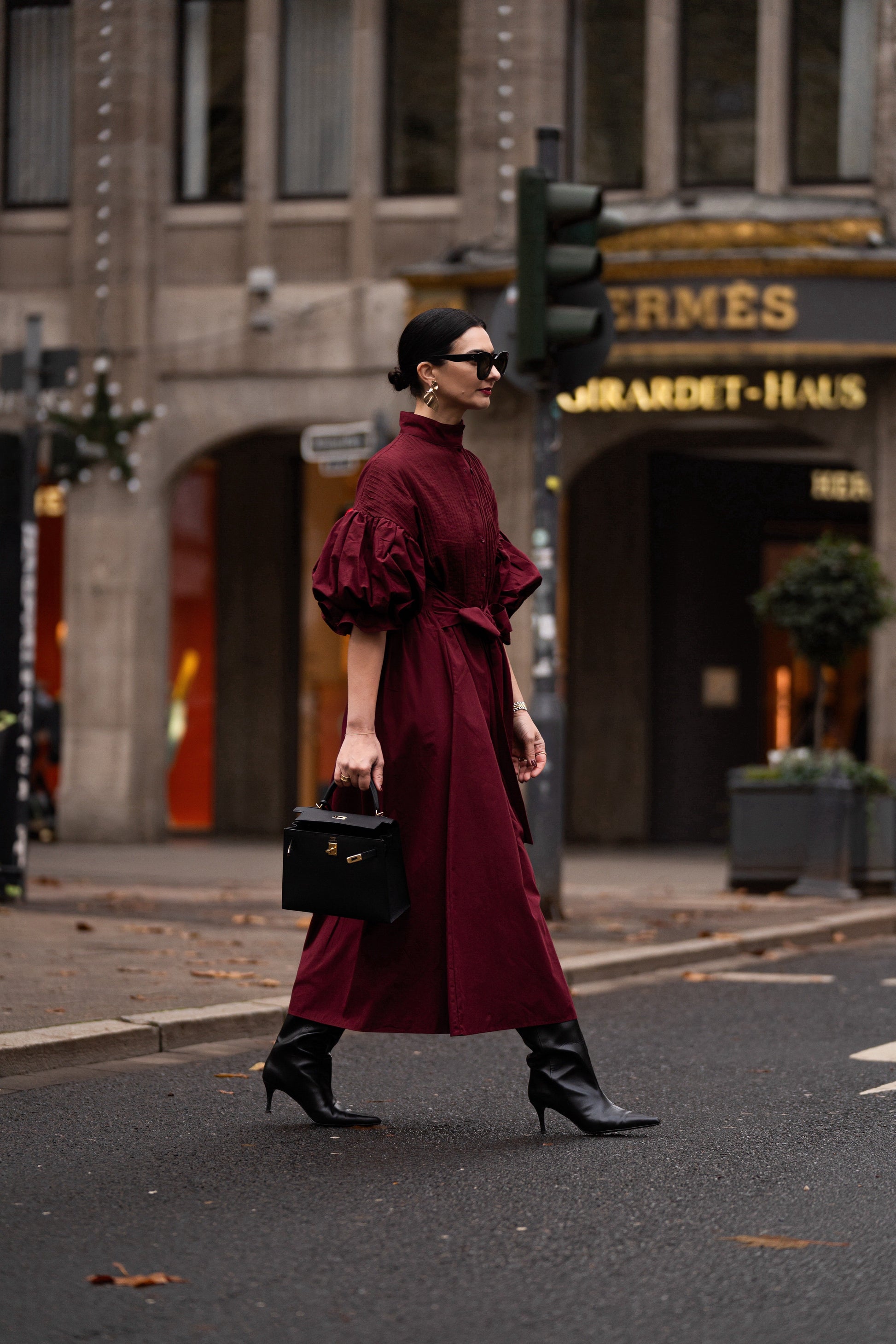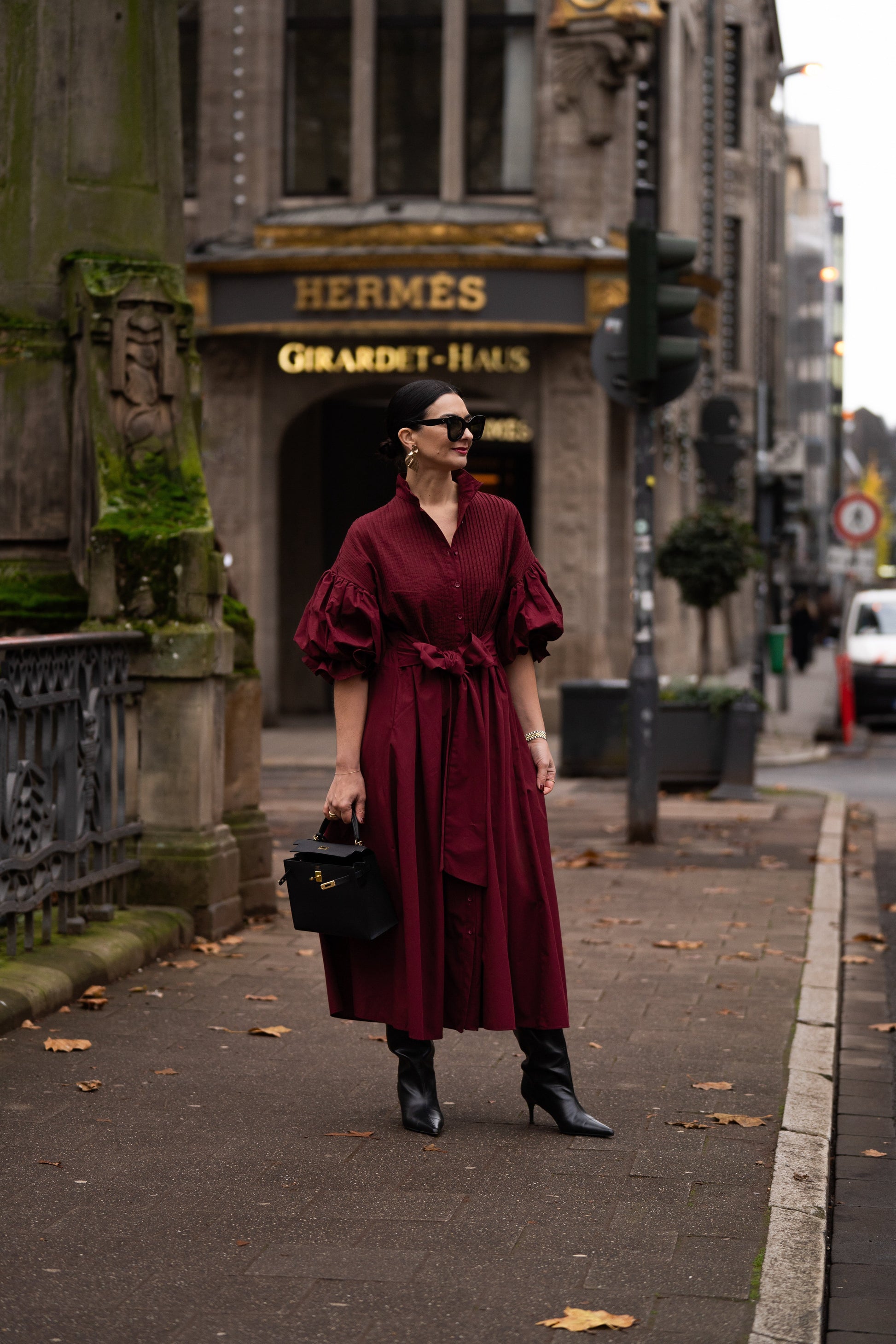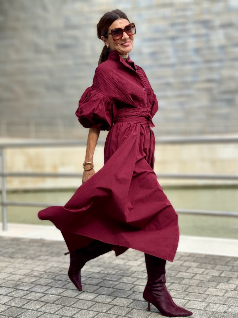 The Dress Phoebe Burgundy is a stylish and comfortable garment made from 100% Egyptian cotton. With a one size fits all design, this dress is suitable for a range of sizes from 34 to 42 in the German size system (see: tab sizes). Measuring a length of 130 cm, this dress is perfect for any occasion. The fabric belt is attached to the dress. Use machine washes at 30 degrees for easy care and maintenance.
