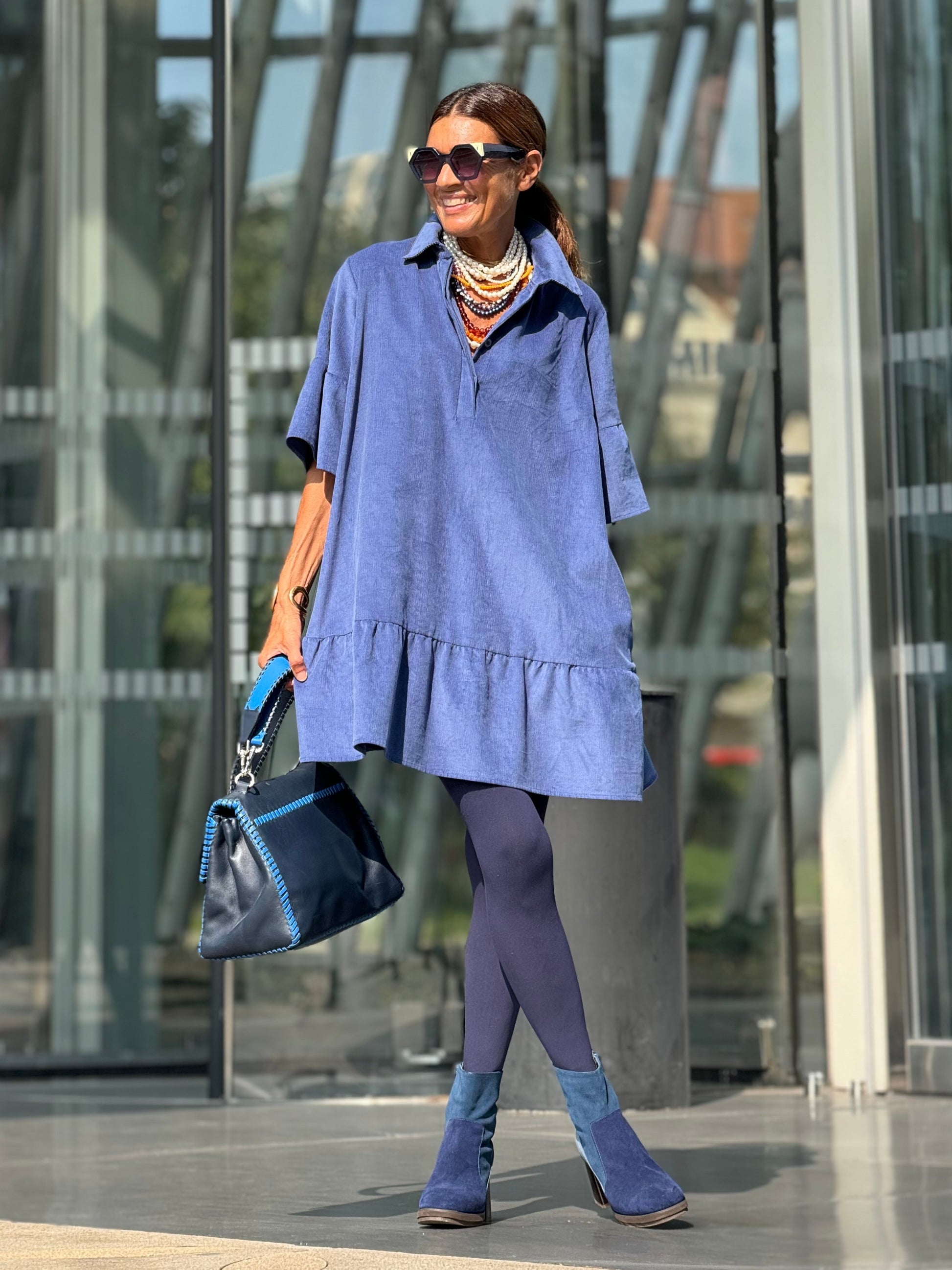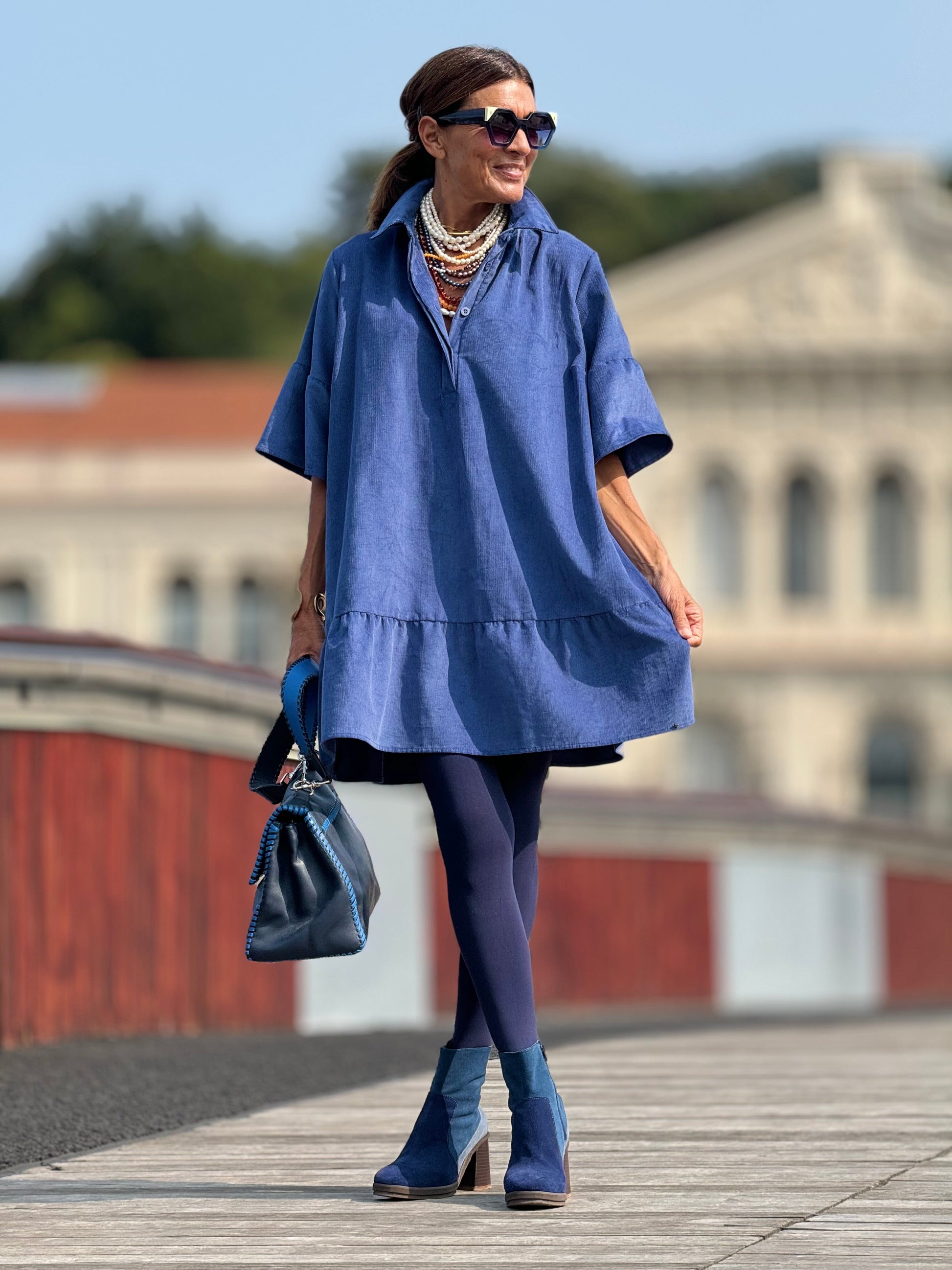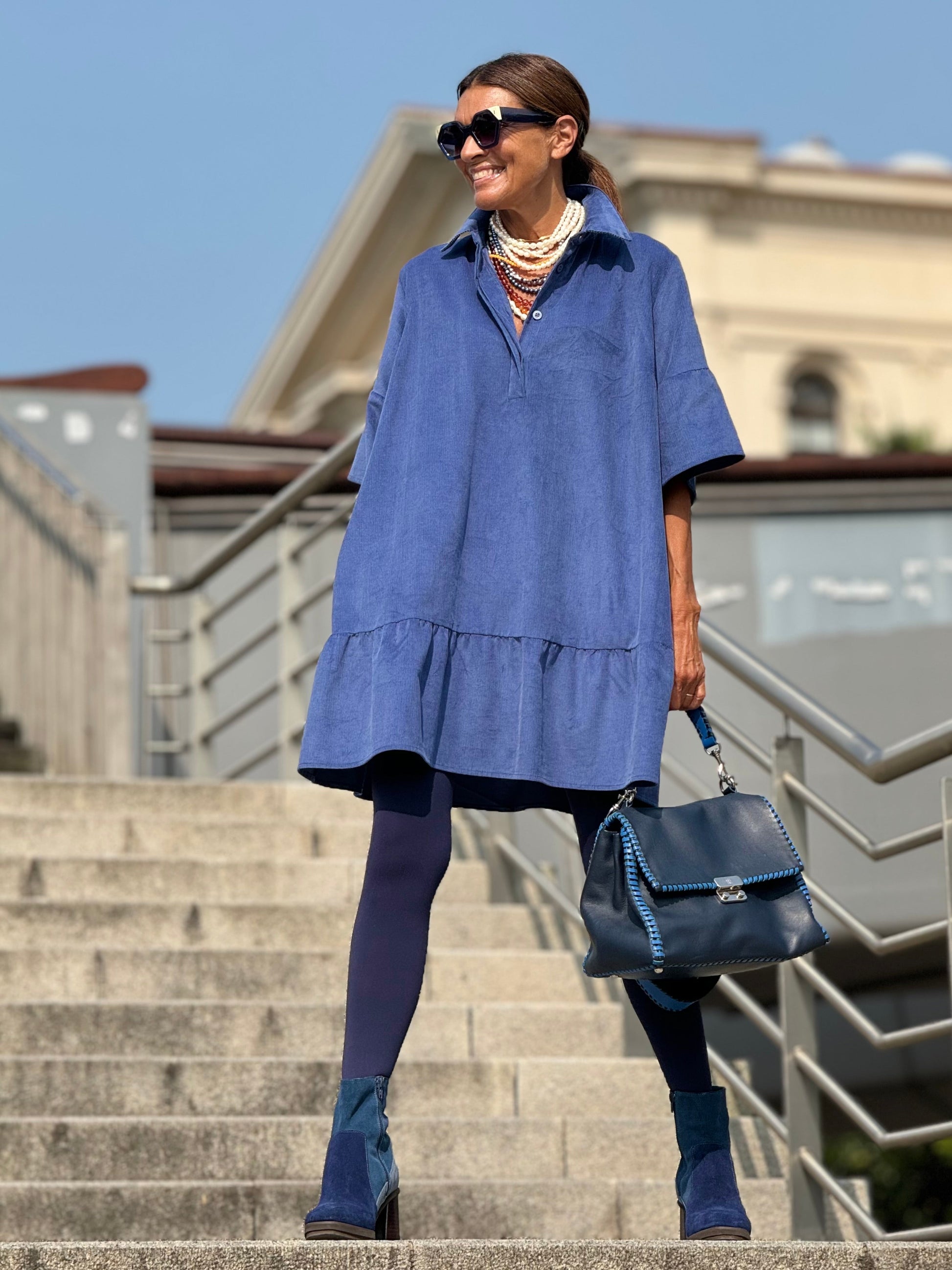 Introducing our Dress Florentine in a beautiful blue corduroy. Designed for a more casual setting, this dress effortlessly combines comfort with style. Perfect for a day out in the city or a relaxed dinner with friends. Embrace the laid-back luxury of this dress and elevate your wardrobe with a touch of sophistication.Dress Florentine Cord Blue has sidepockets. Length 91 cm/2.99 ft