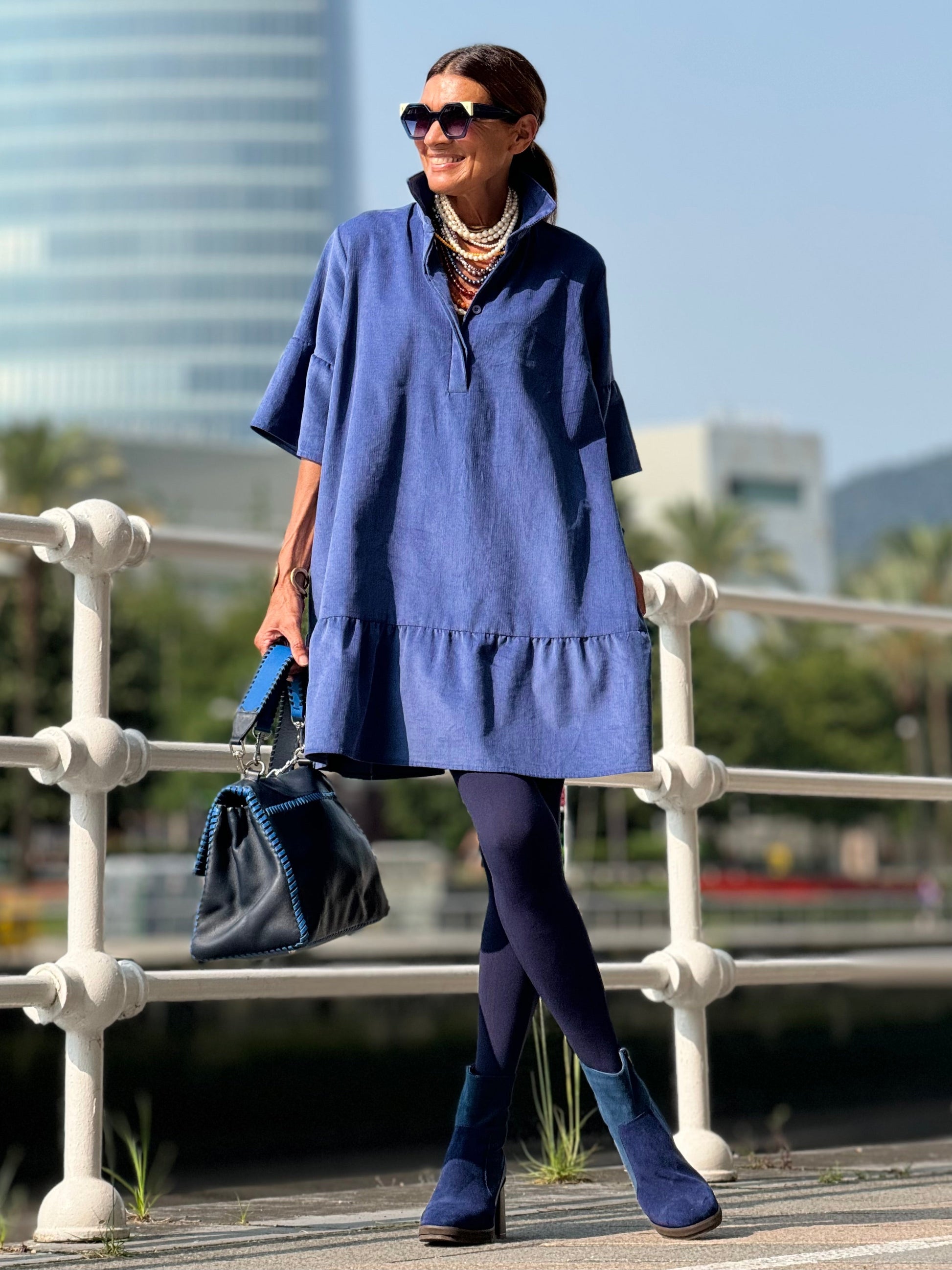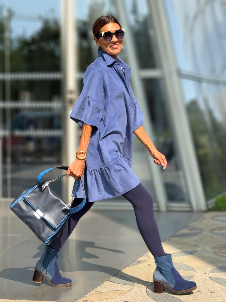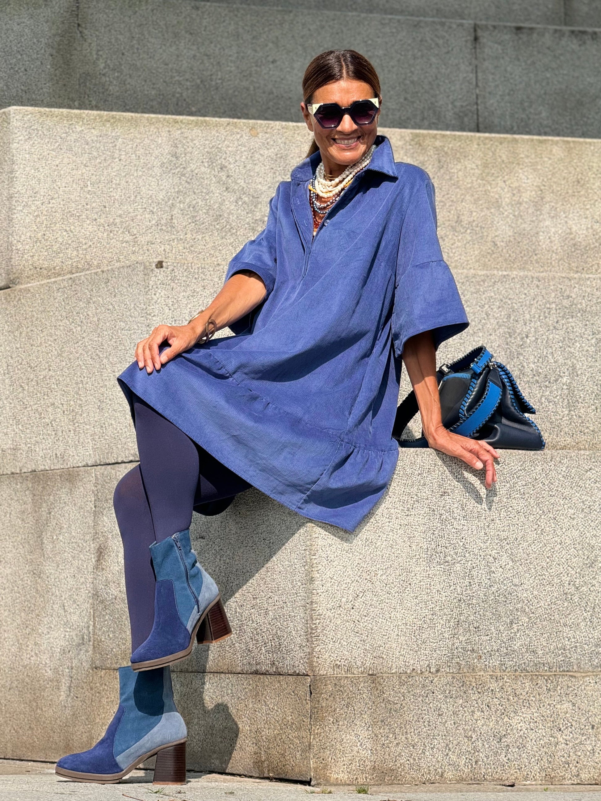 Introducing our Dress Florentine in a beautiful blue corduroy. Designed for a more casual setting, this dress effortlessly combines comfort with style. Perfect for a day out in the city or a relaxed dinner with friends. Embrace the laid-back luxury of this dress and elevate your wardrobe with a touch of sophistication.Dress Florentine Cord Blue has sidepockets. Length 91 cm/2.99 ft