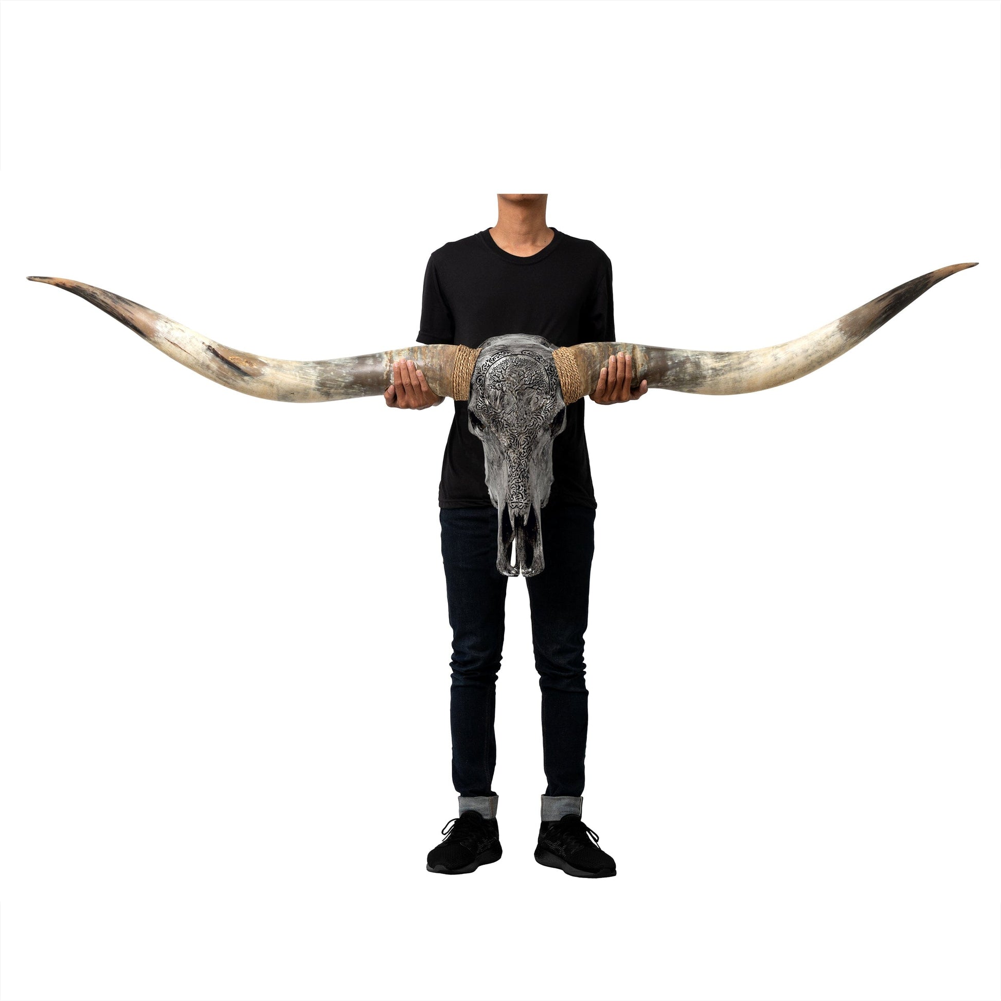 Hand Carved Longhorn Skull // XL Horns - Gray Yggdrasil