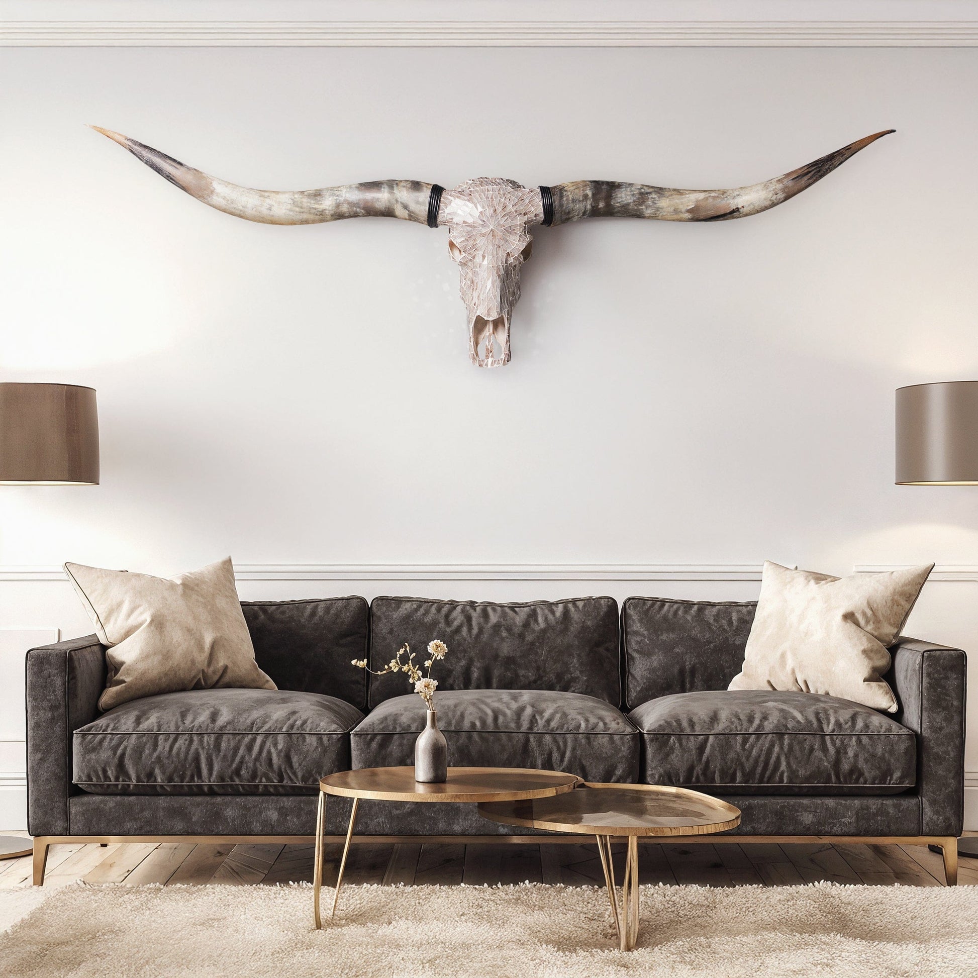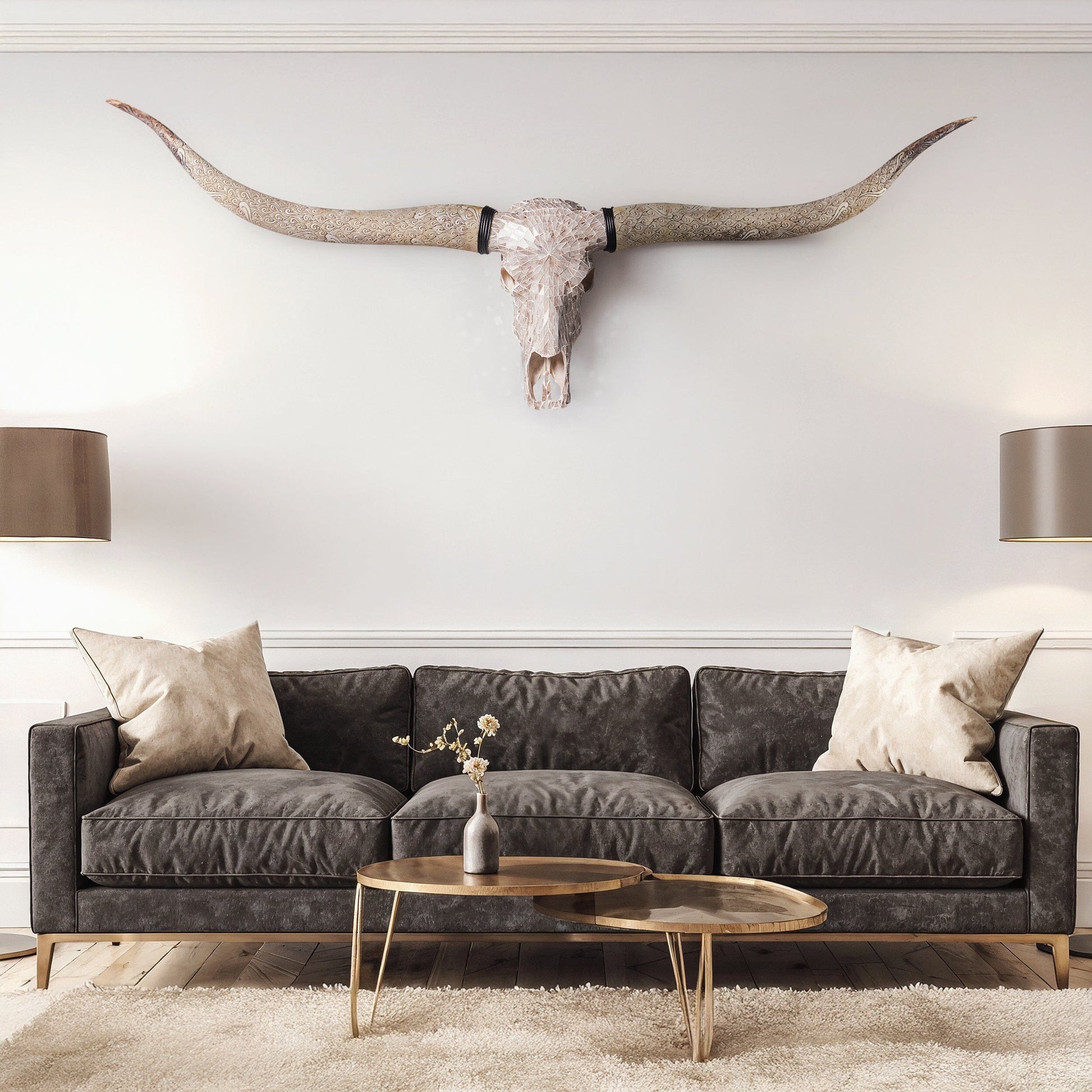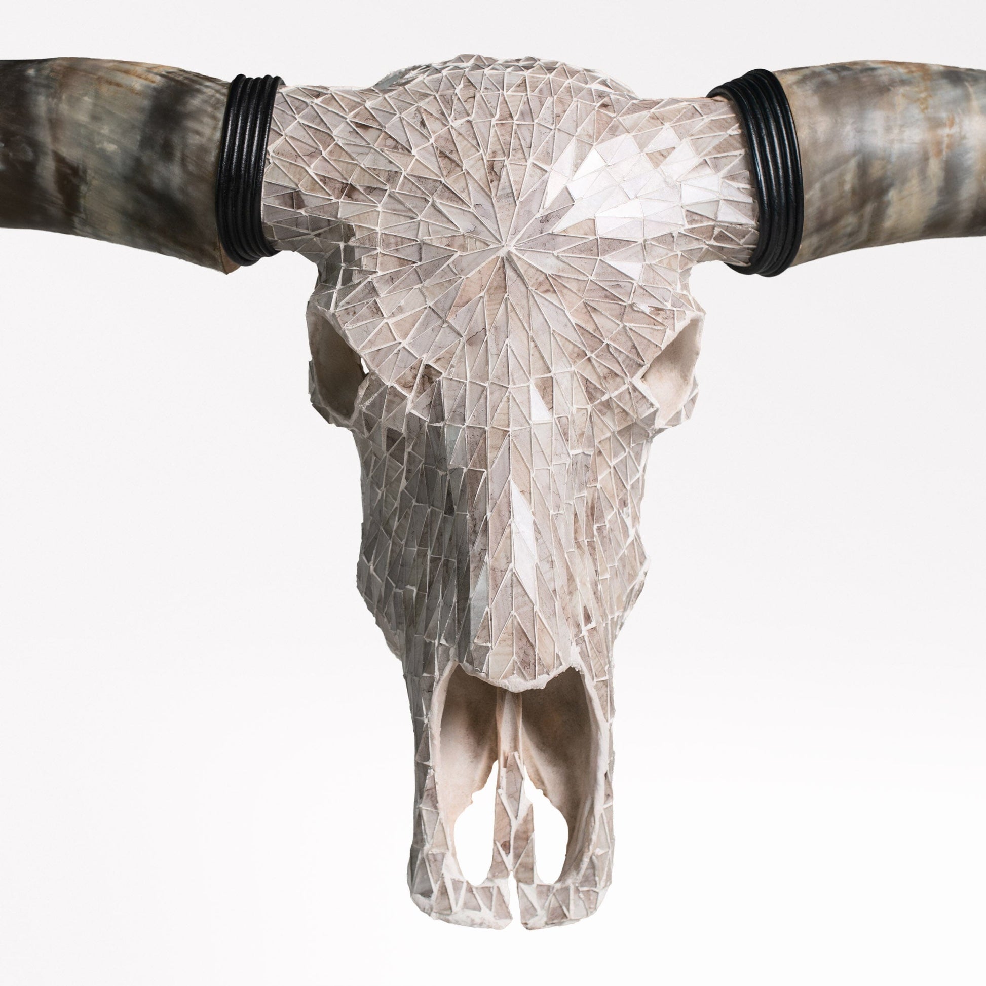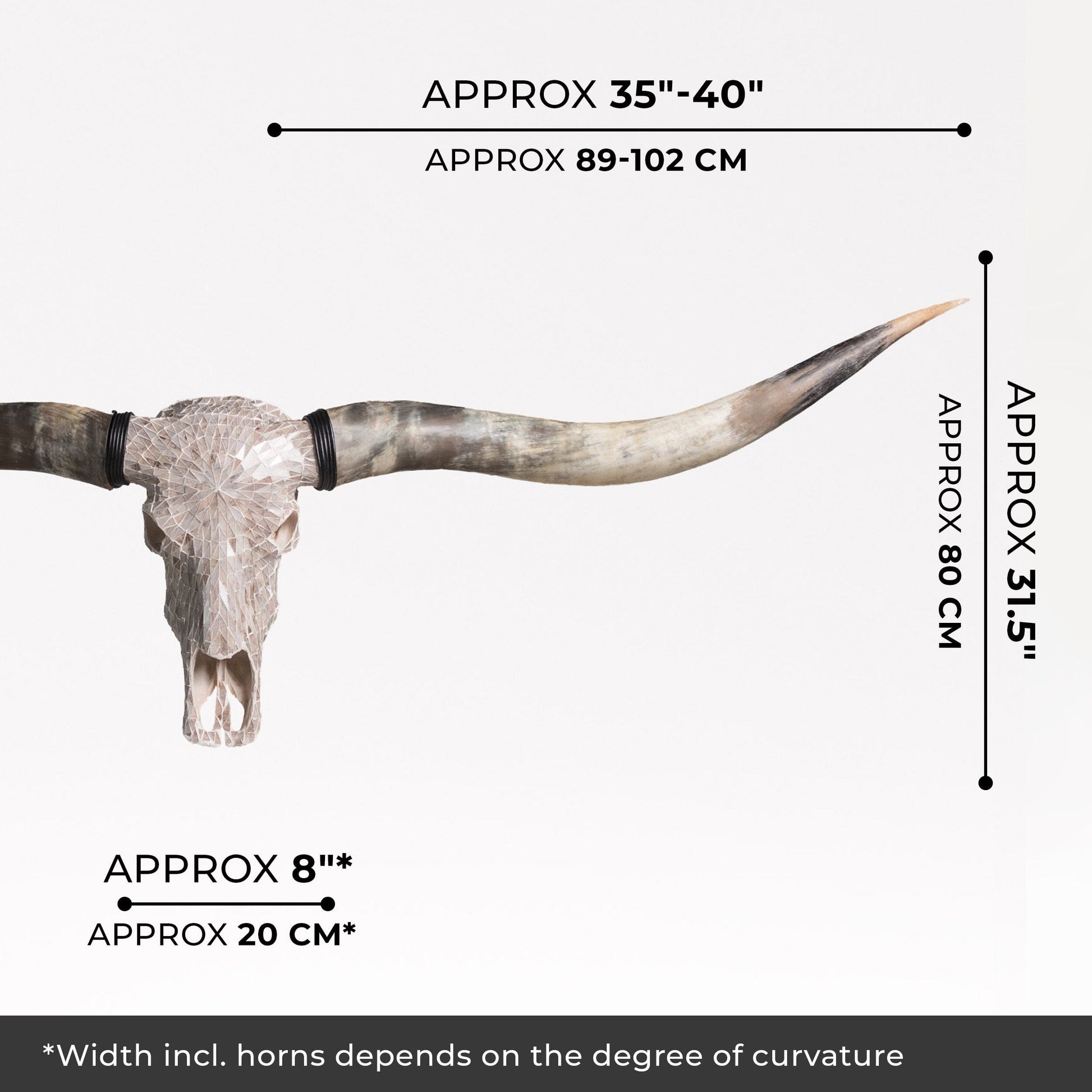 Embrace the element of chance with our mesmerizing Longhorn Skull // XL Horns - Beige Mirror // Mosaic Finish. This jaw-dropping home decor blends both the organic influence of natural skulls with the modern allure of beige mosaic. This is a premium piece like no other.