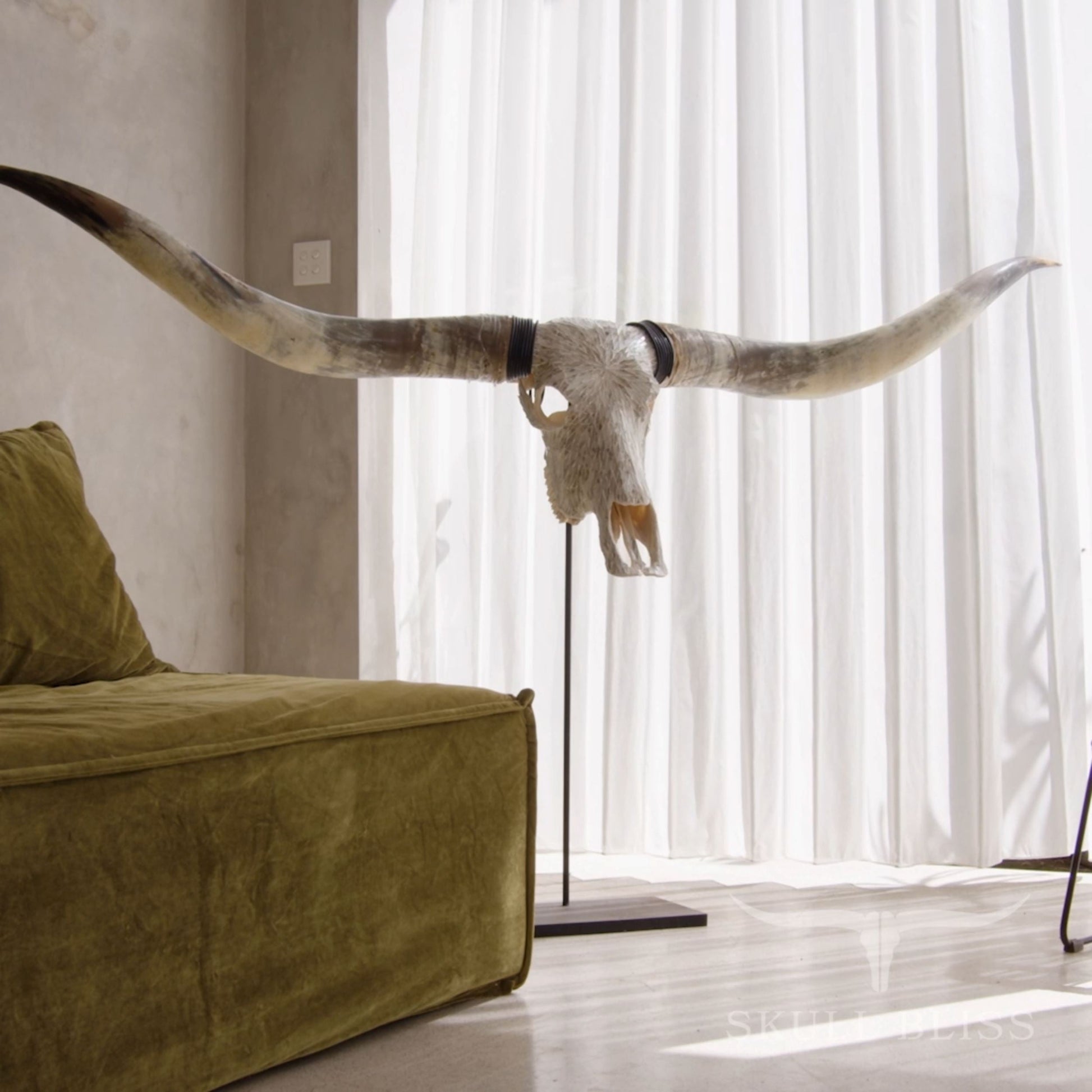 A truly impactful piece, this longhorn skull has to be seen to be believed. Our XL longhorn skulls don’t come around very often, so make sure to take advantage of when they are in stock. These impressive skulls are unique to Skull Bliss, so you won’t find anything like them elsewhere.