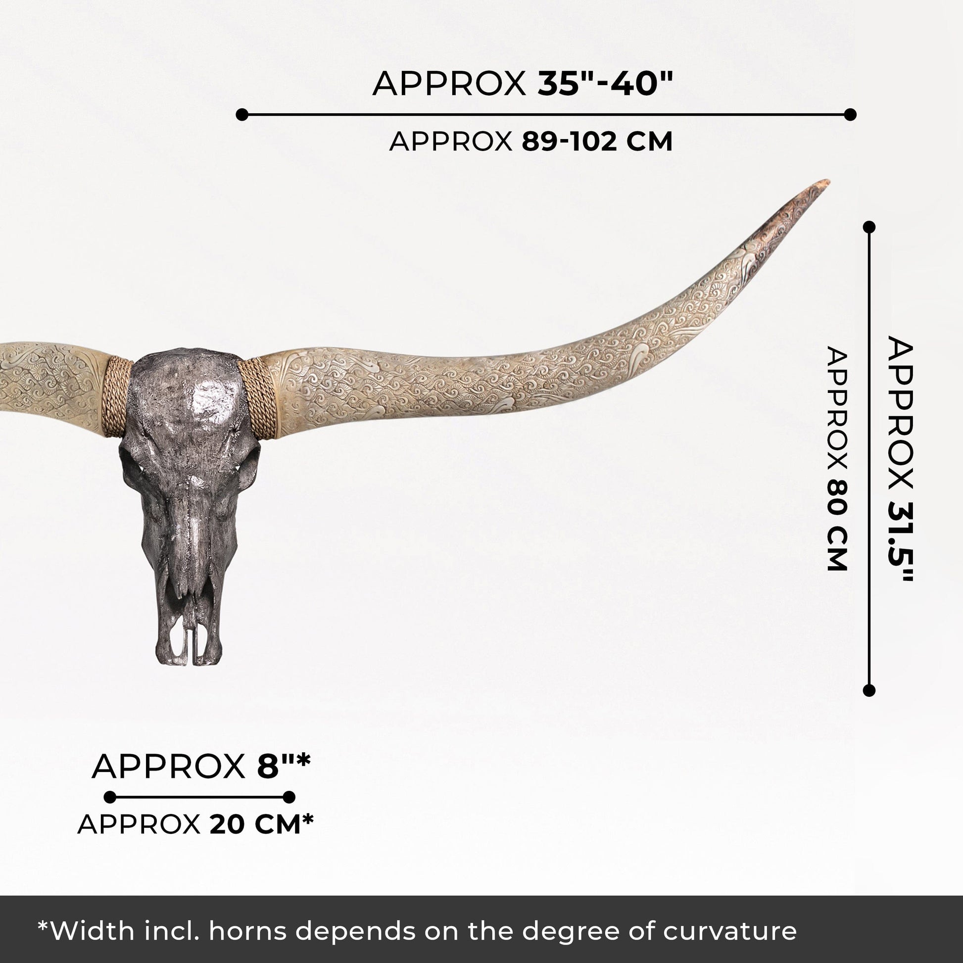 A truly impactful piece, this longhorn skull has to be seen to be believed. Our XL longhorn skulls don’t come around very often, so make sure to take advantage of when they are in stock. These impressive skulls are unique to Skull Bliss, so you won’t find anything like them elsewhere.