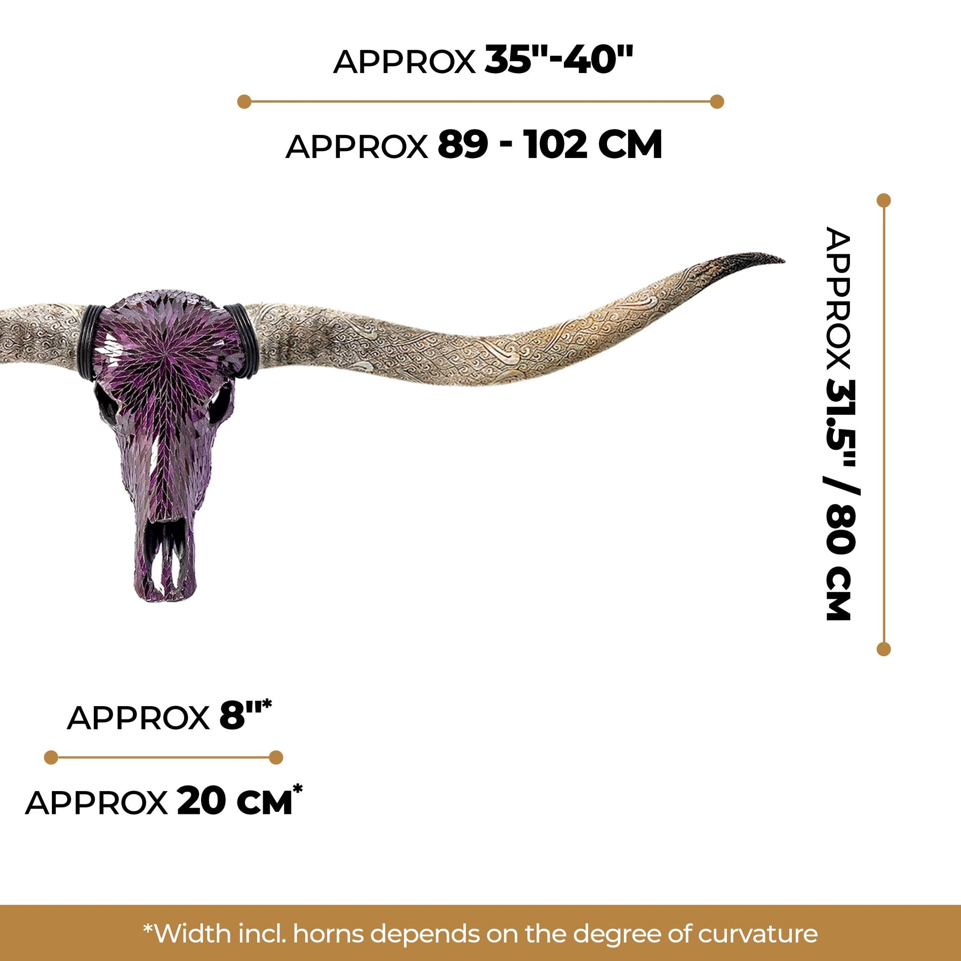 A truly impactful piece, this longhorn skull has to be seen to be believed. Our XL longhorn skulls don’t come around very often, so make sure to take advantage of when they are in stock. These impressive skulls are unique to Skull Bliss, so you won’t find anything like them elsewhere.