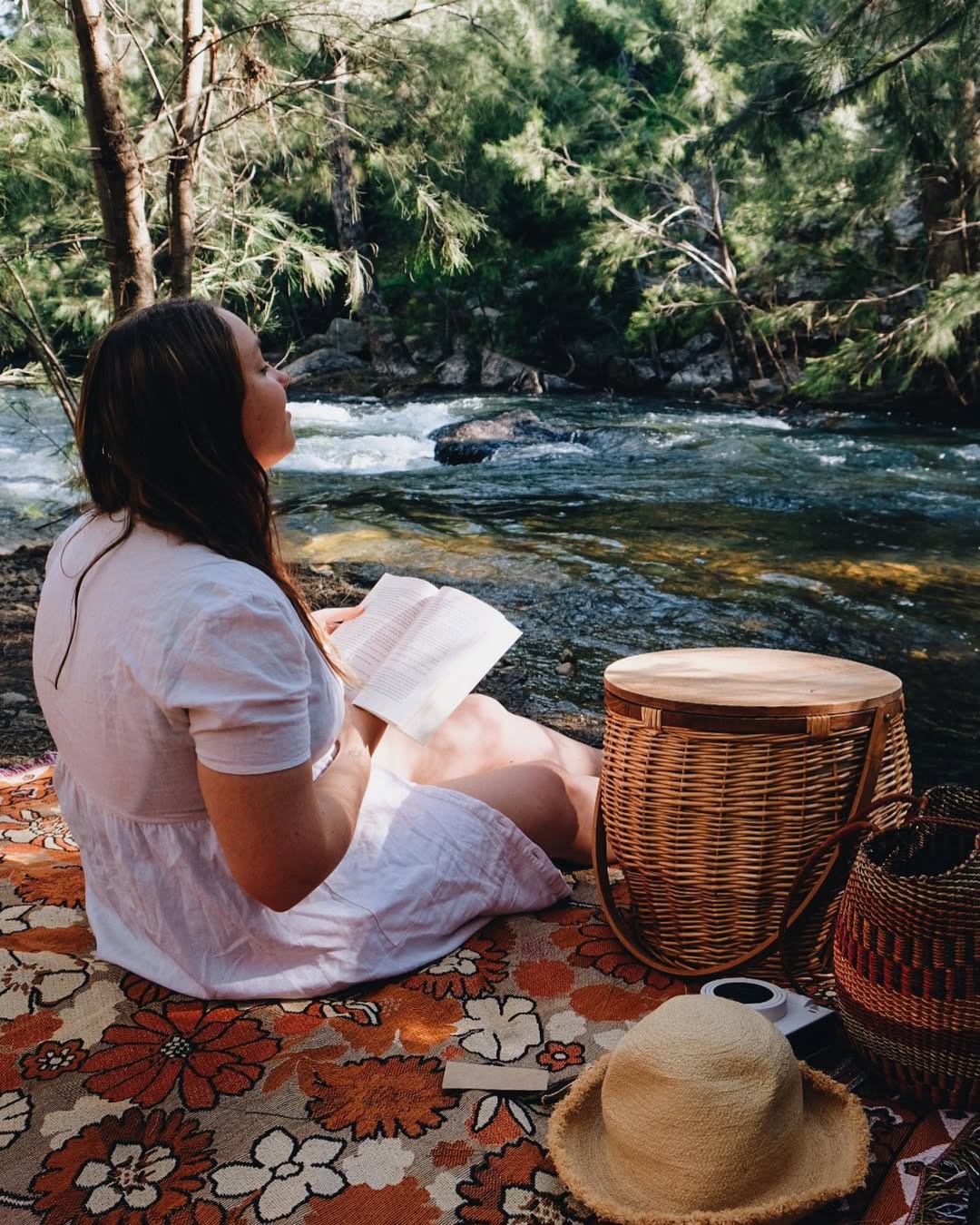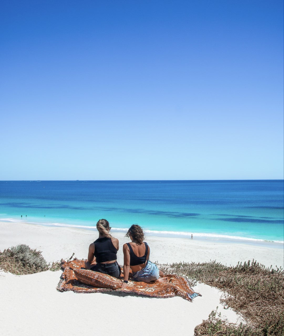 Our 'Penny Lane' picnic rug is a funky, floral, retro design. Largely inspired by the carefree days of a bygone vintage era. Its warm earthy tones with hints of chalky beige/lemon accents are a perfect accompaniment to any bohemian interior. This piece has retro funk entrenched in its design and does not take itself too seriously. This particular picnic rug design is reversible with a perfect combination of jade and dark green, soft blue and blackcurrant highlights on the reverse side (bonus!).