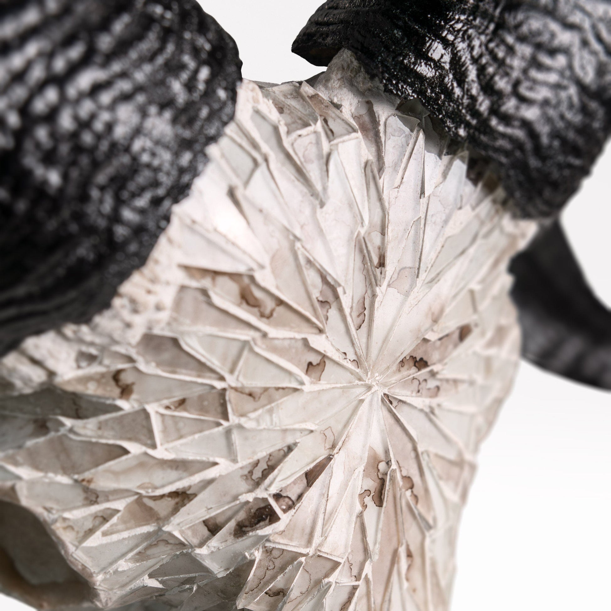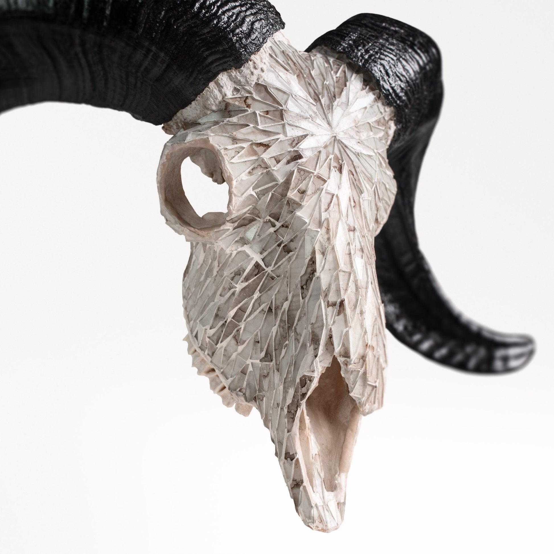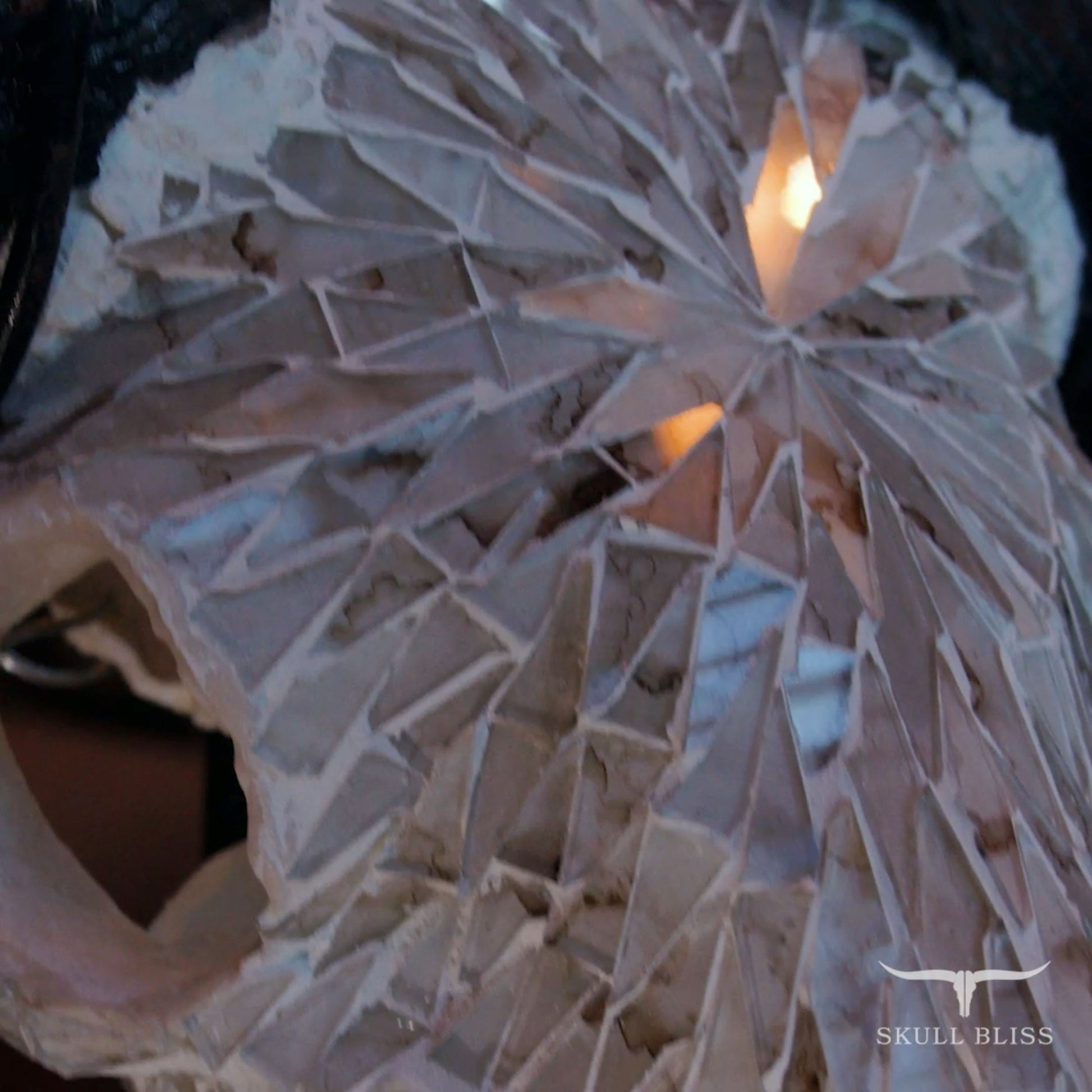 Irregular pieces of beige mirror are expertly attached to the skull, creating a hypnotic play of light and reflection. This premium skull is hand-crafted by talented Balinese artisans, using skills that take years to develop. The result is a work of art that celebrates its surroundings and the element of chance, with a finish that will impress for years to come.