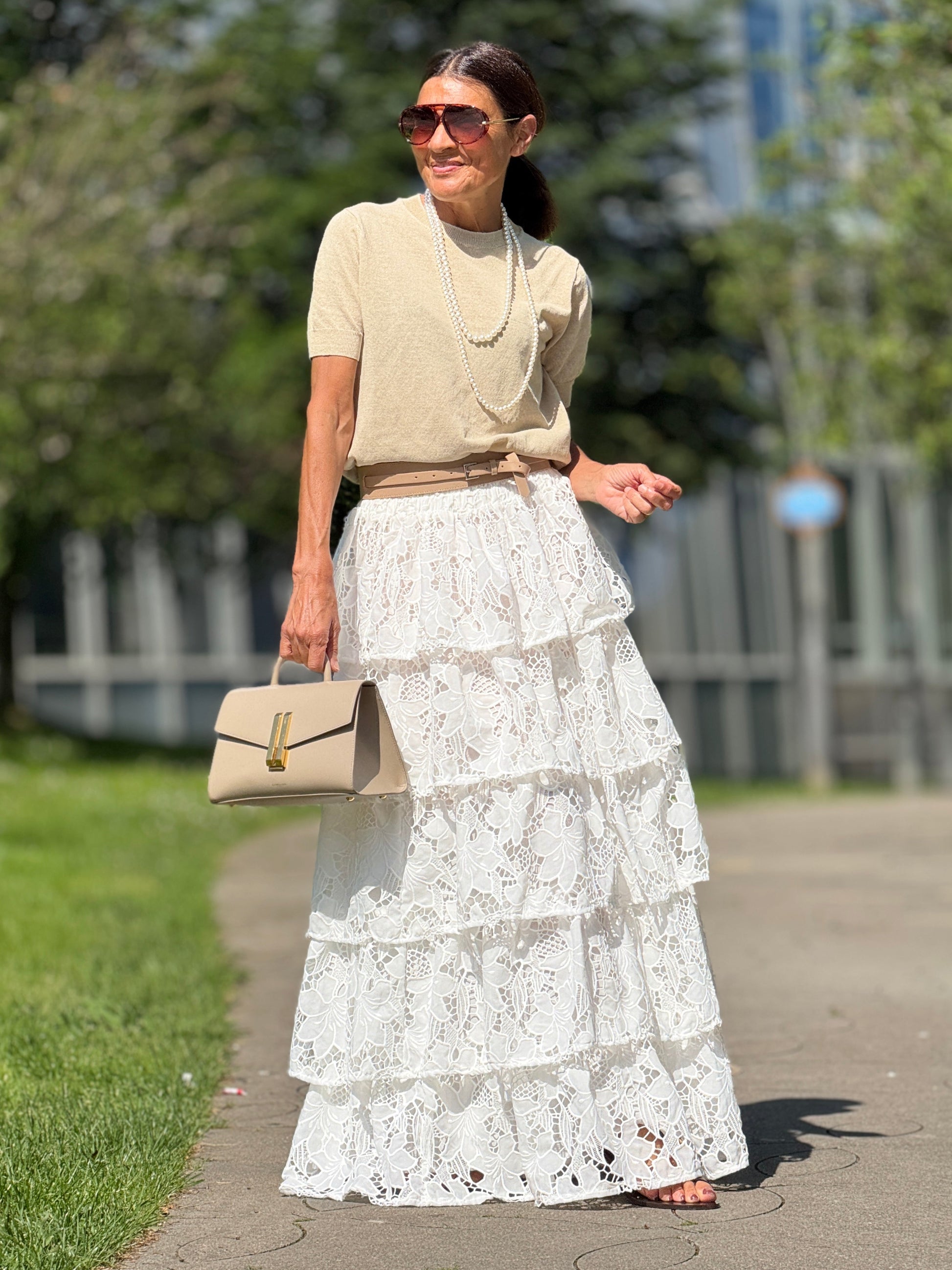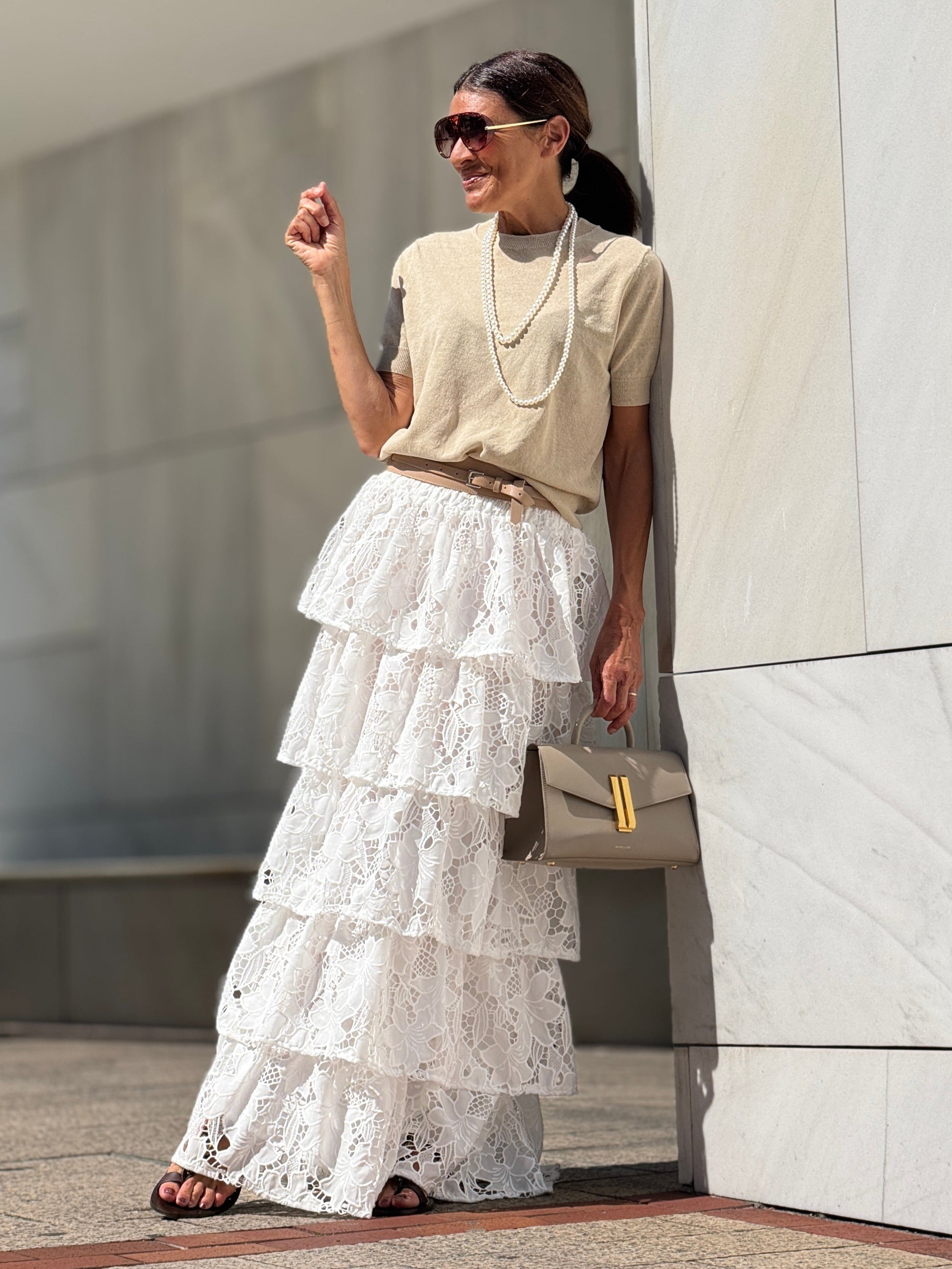 The Skirt Mabel Lace White is a stylish and comfortable garment made from delicate Brussels Cotton Lace. With a one size fits all design, this dress is suitable for a range of sizes from 34 to 42 in the German size system (see: tab sizes). This Skirt is perfect for any occasion. Use machine washes at 30 degrees for easy care and maintenance. Conquer your day in style with Skirt Mabel Lace. The Skirt Mabel Lace comes with a cotton underdress.