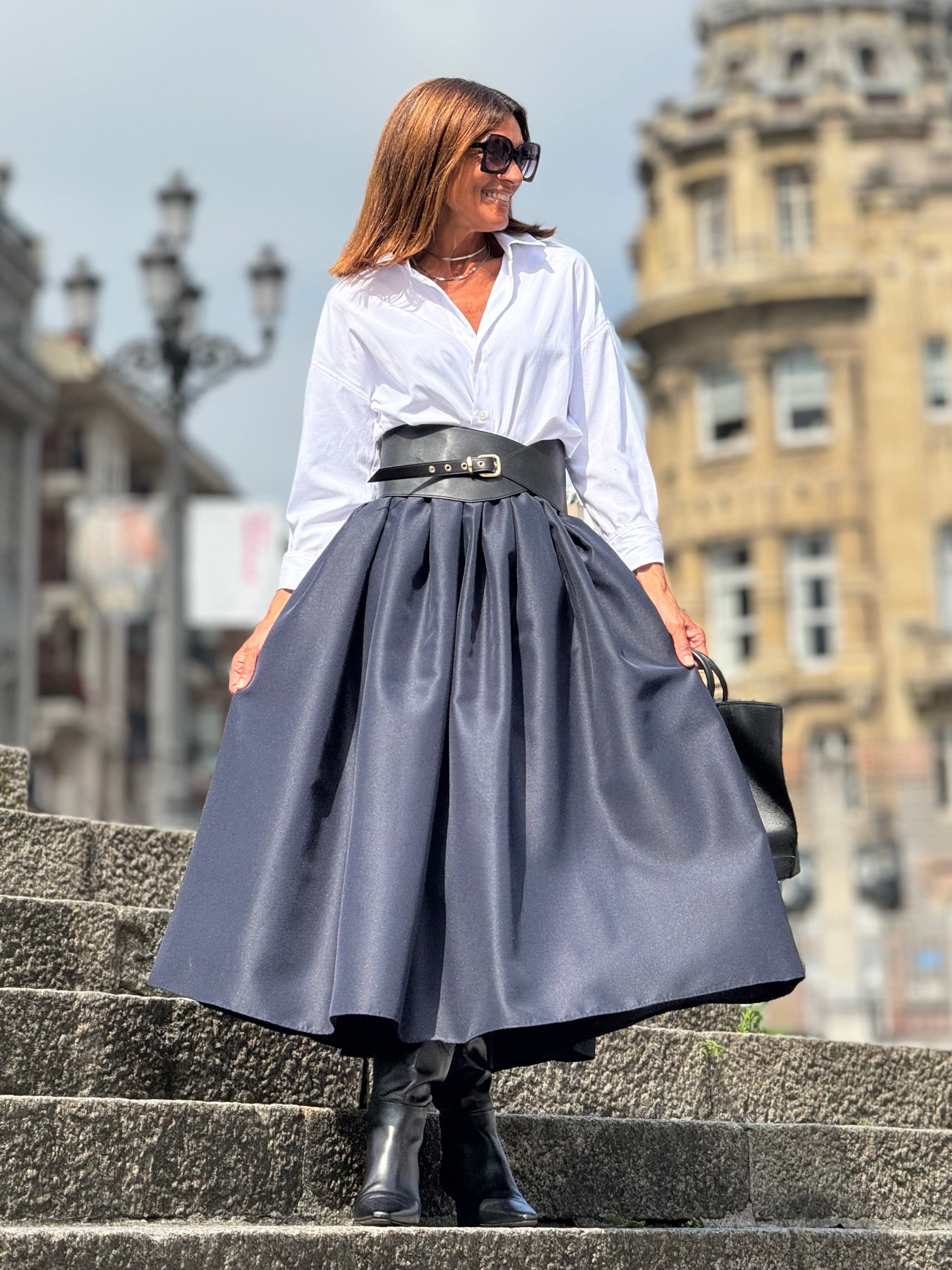 This Skirt Maxima from taffetas fabric is the perfect maxi skirt for any occasion. The taffetas fabric delivers a comfortable fit while providing a sophisticated look. It comes in Black, White, Pink & Red, making it an ideal choice for formal occasions or everyday wear. Side pockets. Skirt Maxima is one size and has elastic in the waist. The length is 90 cm / 35.5 Inches.