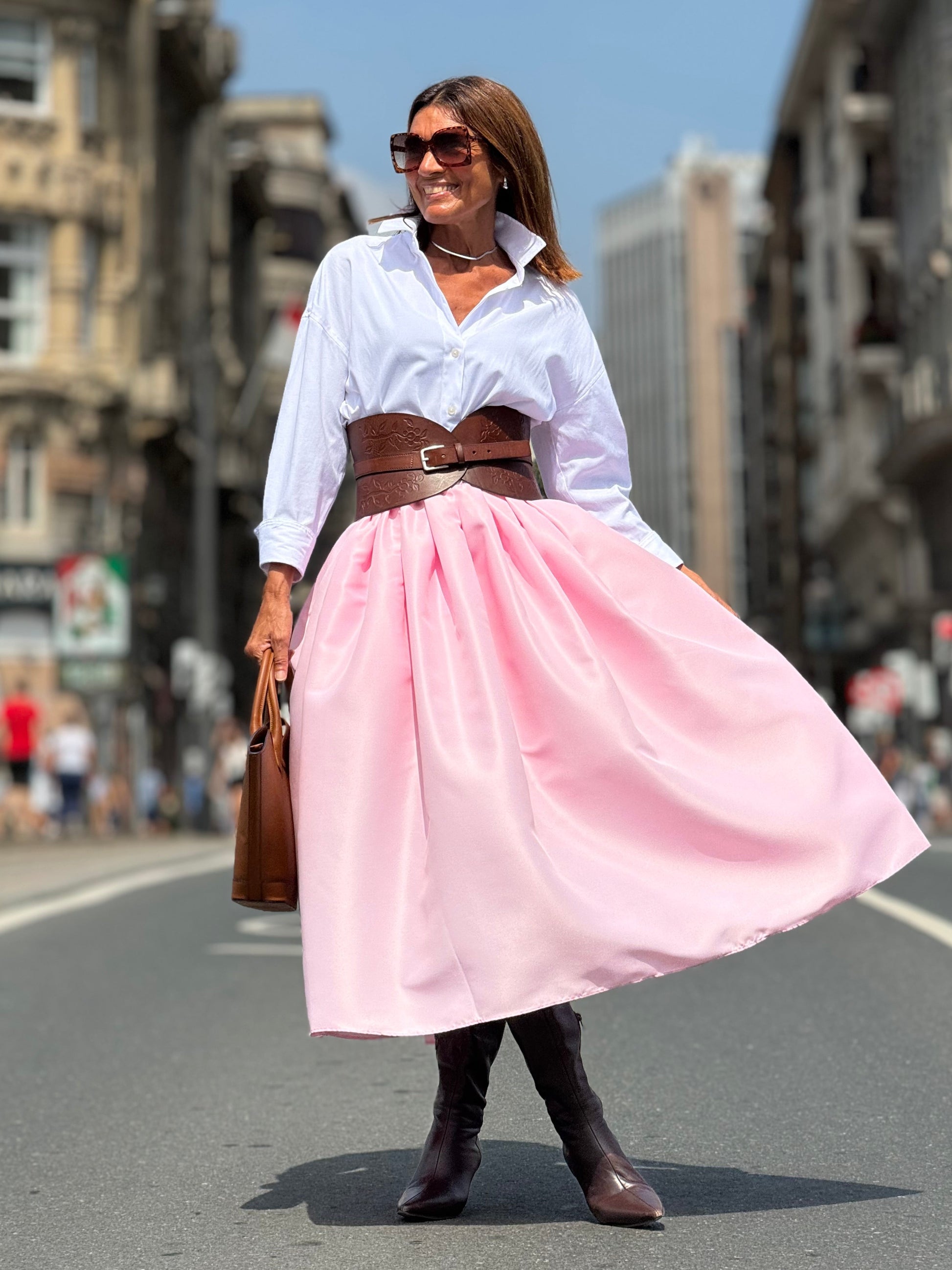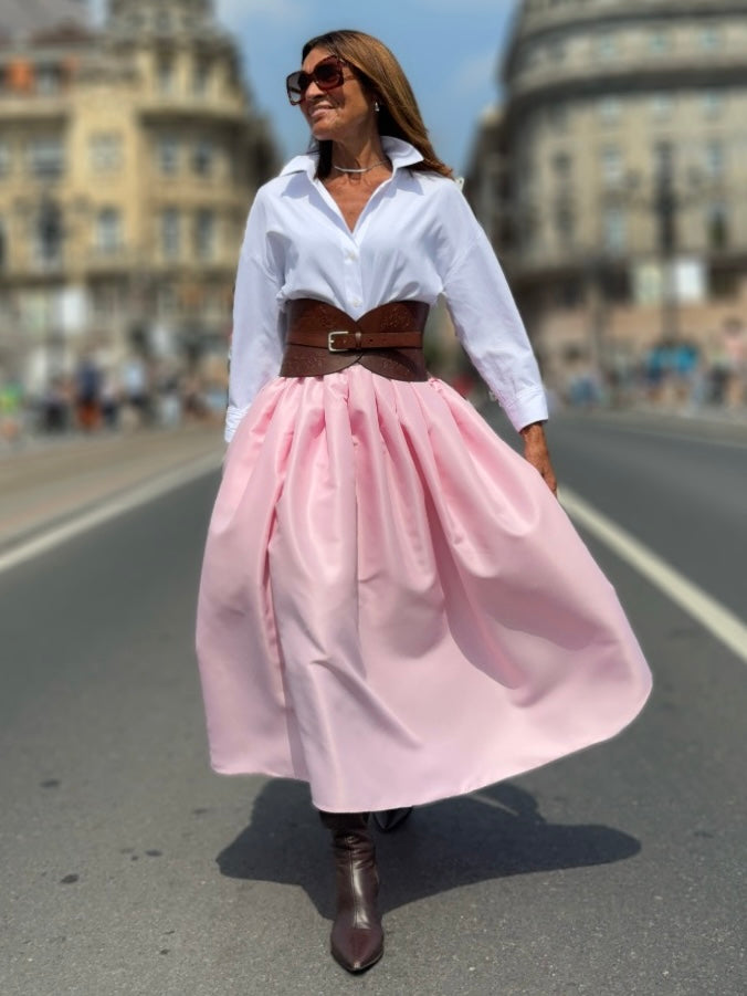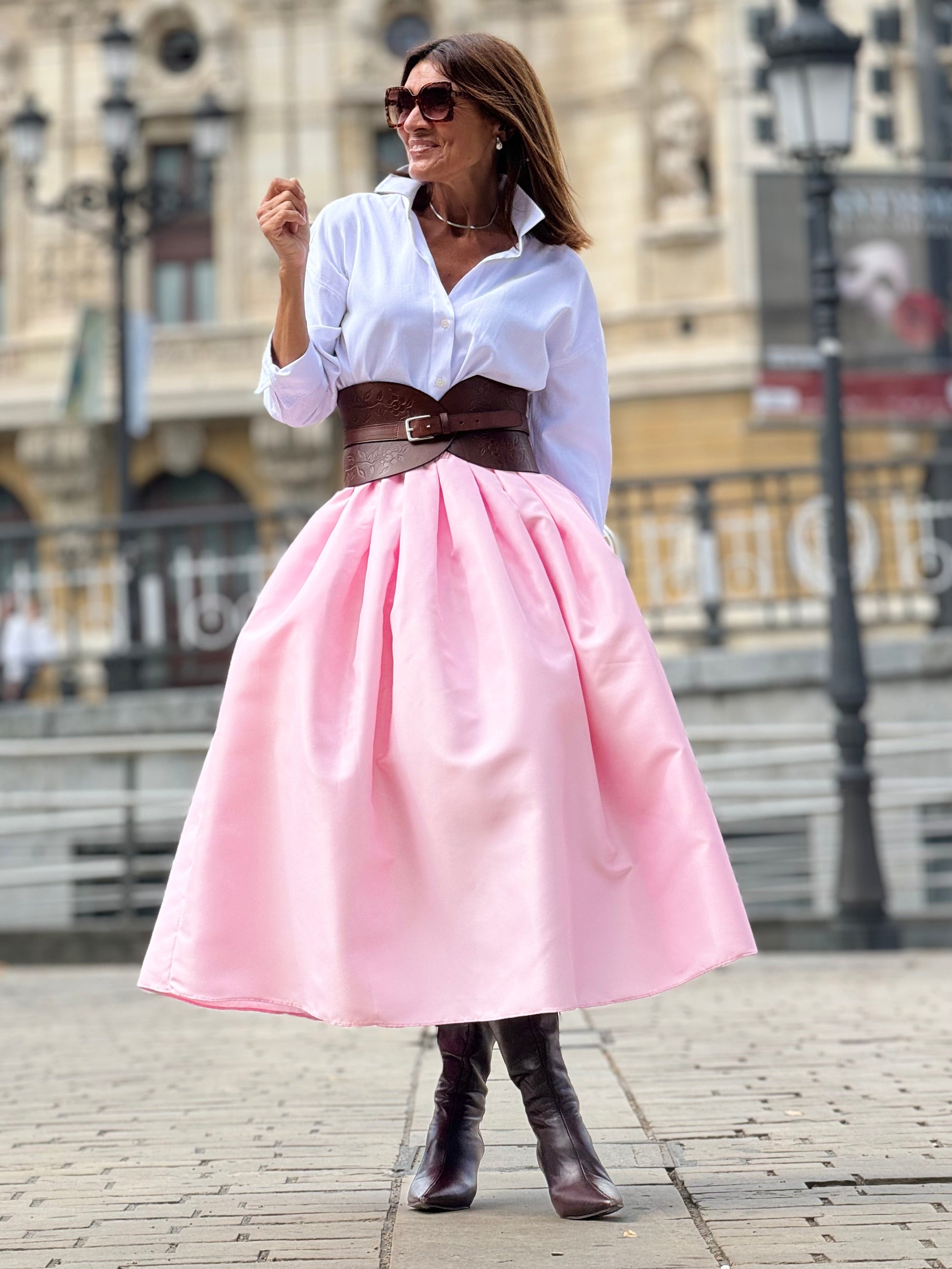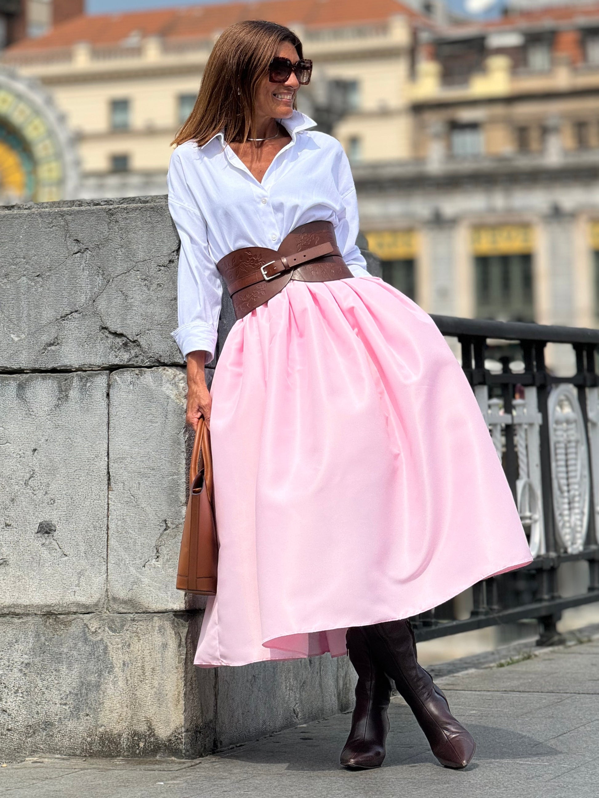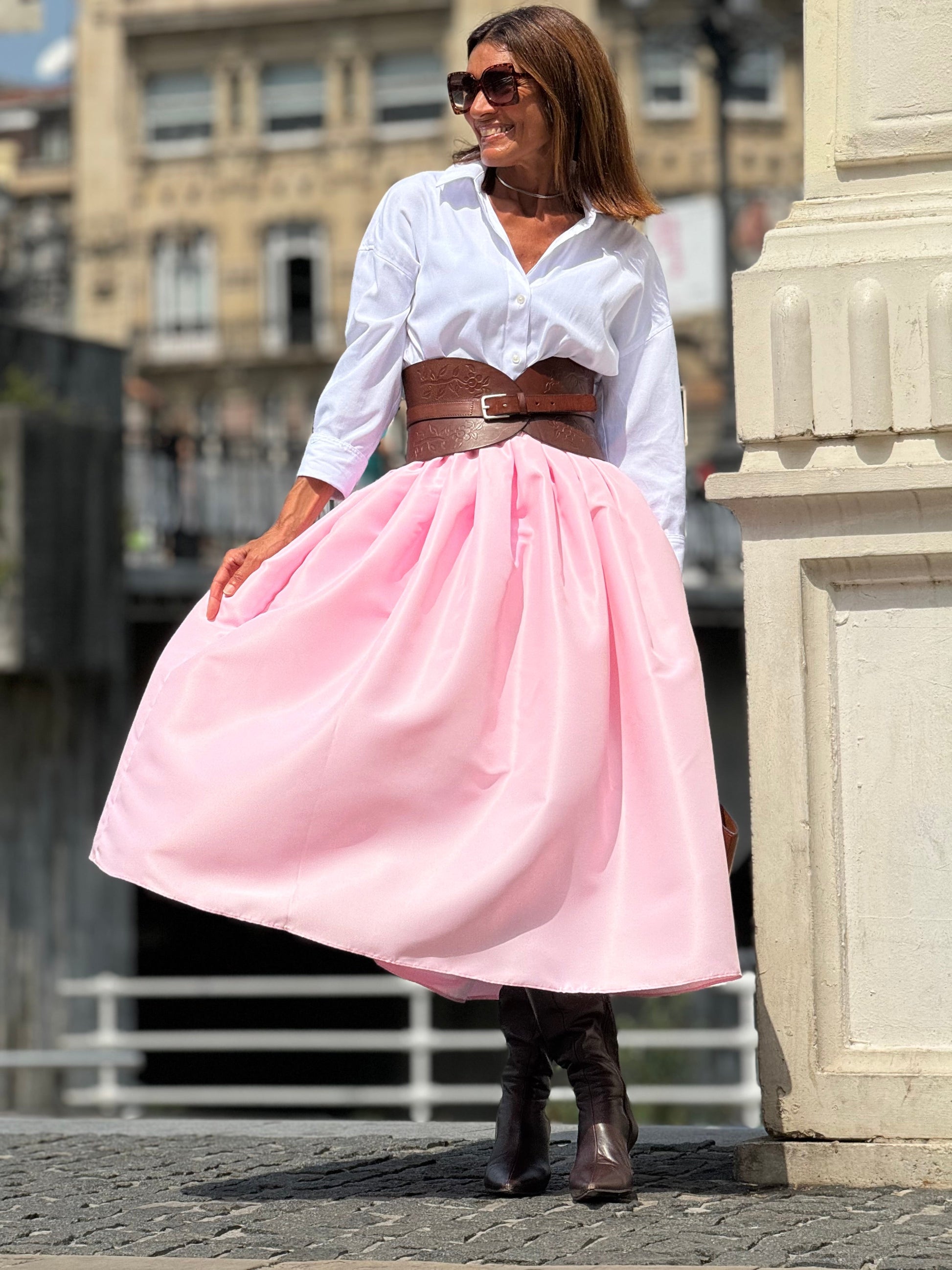 This Skirt Maxima from taffetas fabric is the perfect maxi skirt for any occasion. The taffetas fabric delivers a comfortable fit while providing a sophisticated look. It comes in white, pink, black and red making it an ideal choice for formal occasions or everyday wear. Side pockets. Skirt Maxima is one size and has elastic in the waist. The length is 90 cm / 35.5 Inches.