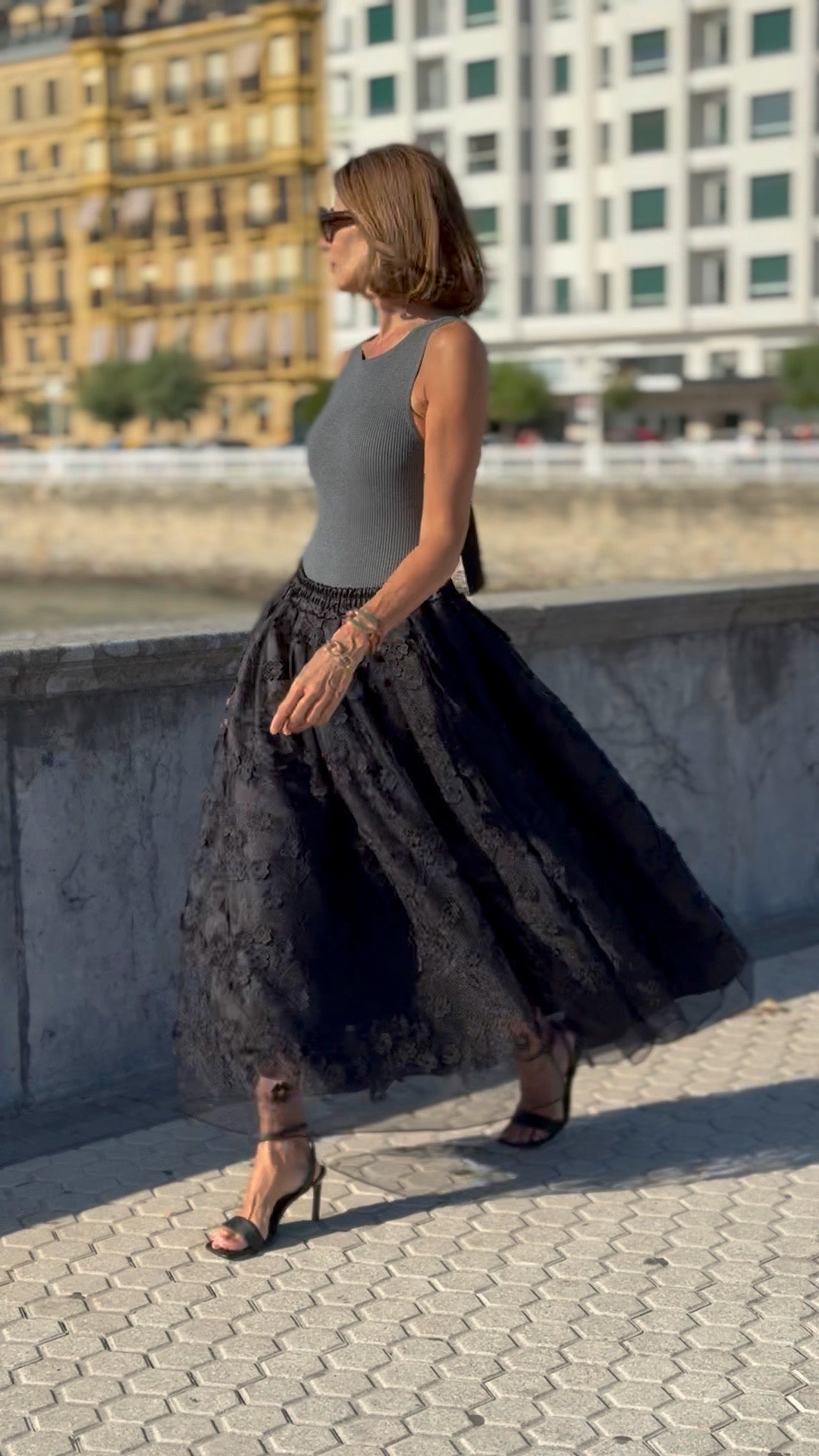 Elevate your style with the Skirt Olivia Black by Marielle Stokkelaar. The classic black color will make you feel confident and stylish. Designed by Marielle Stokkelaar, this skirt is a must-have for any fashion-forward woman.The length of skirt Olivia Black is 91 cm / 2.99 ft